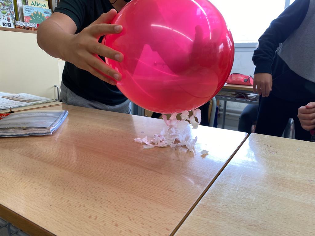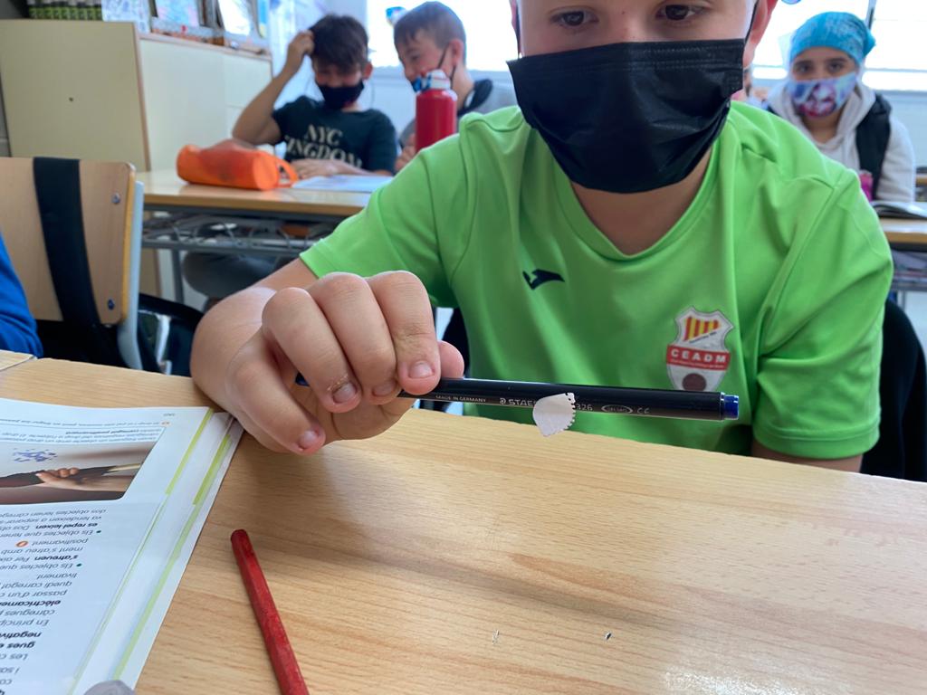Aquest trimestre hem començat a parlar sobre l’energia i l’electricitat. Ahir per la tarda vam fer alguns experiments amb globus on podíem comprovar què passava quan fèiem canviar la càrrega elèctrica dels globus tot fregant-los amb els nostres jerseis. Vam poder comprovar com altres cossos, com per exemple trossets de papers es veien atrets pel globus.