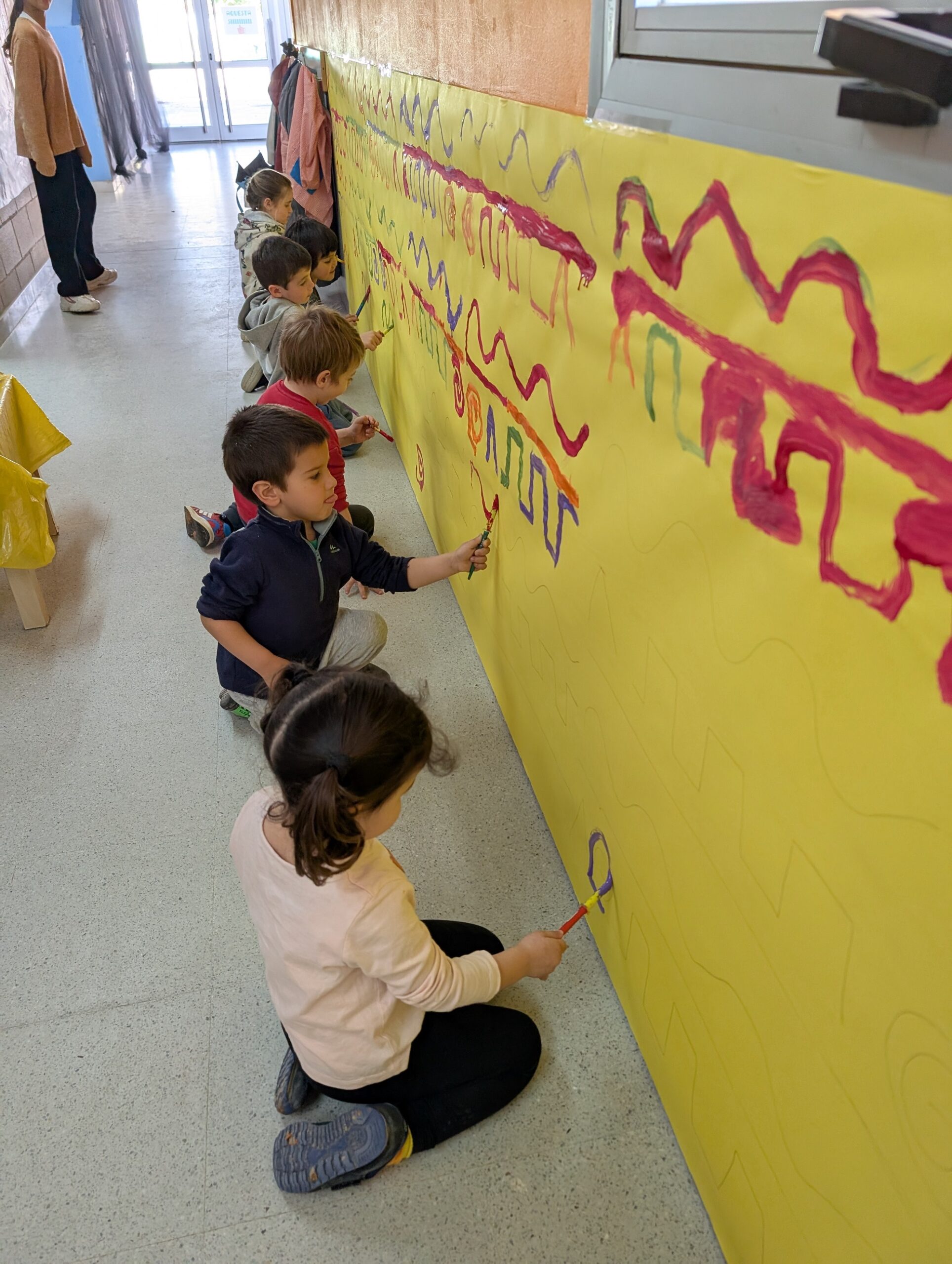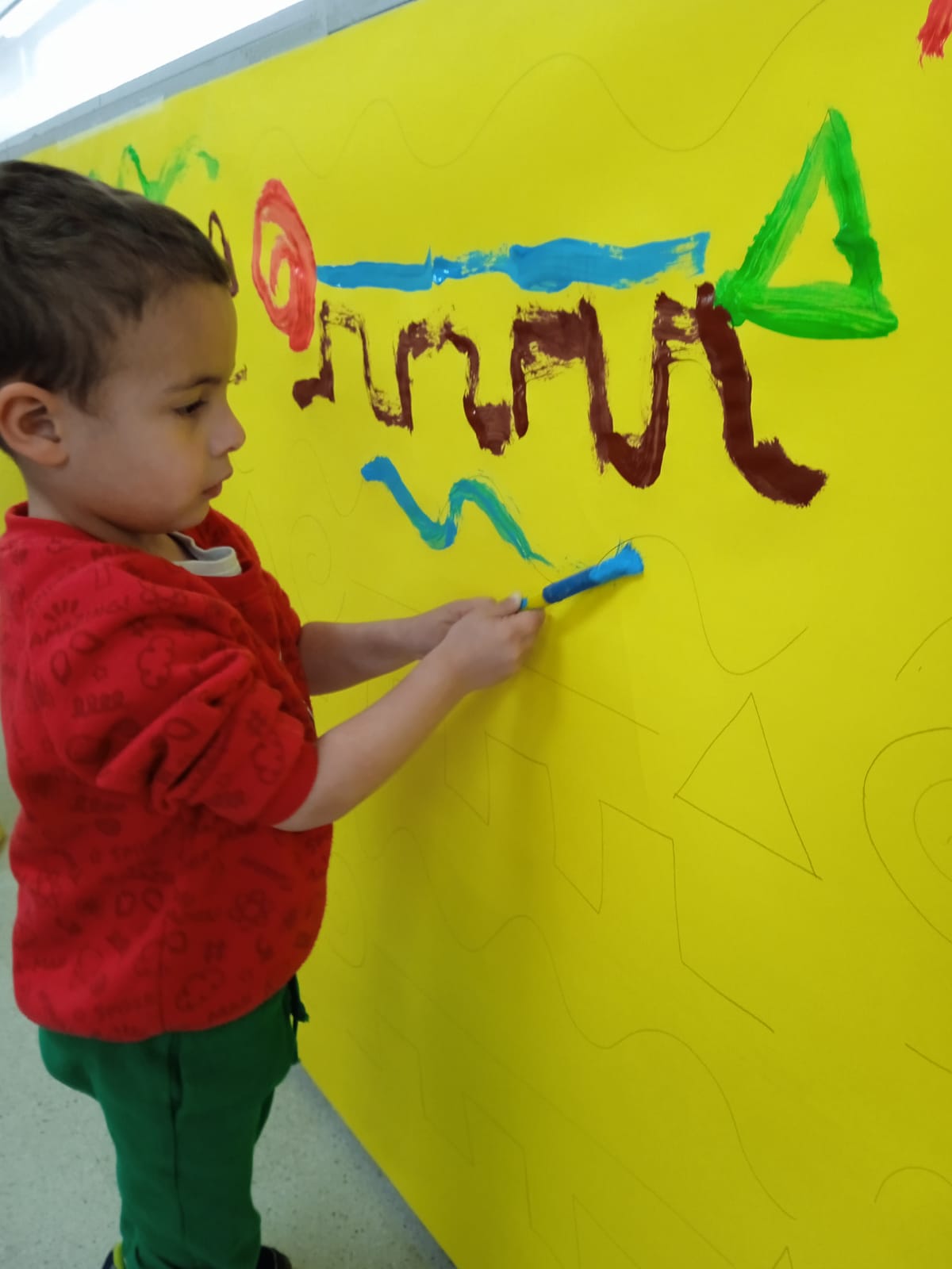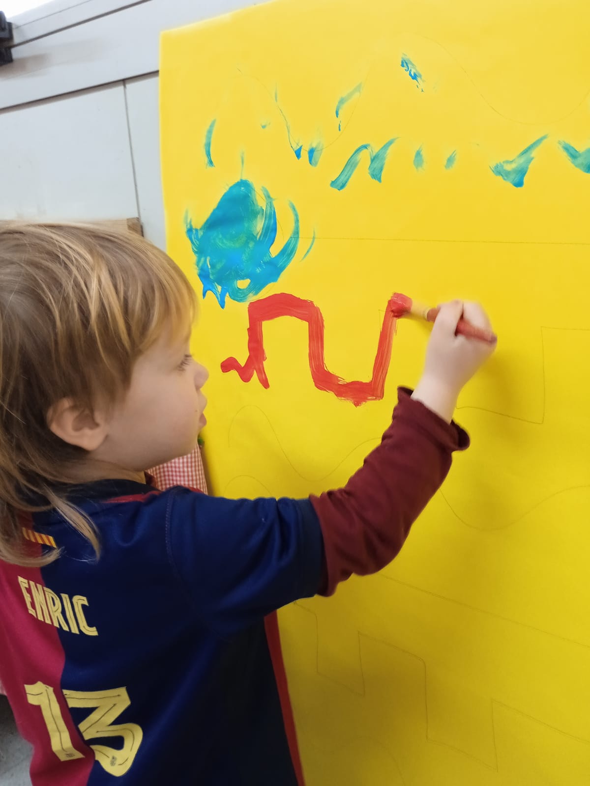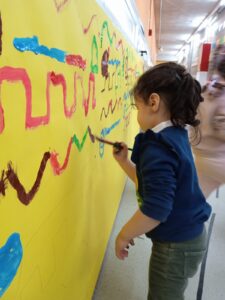 Els infants d’I3 ens engresquem molt amb les propostes proposades per les mestres, aquesta setmana, hem treballat el traç amb pintura de colors vius. Les propostes dels diferents traços que dinamitzem a Educació Infantil, divertides i viscudes com un joc més, és un treball previ de les habilitats que ajudaran els alumnes en el llenguatge escrit.