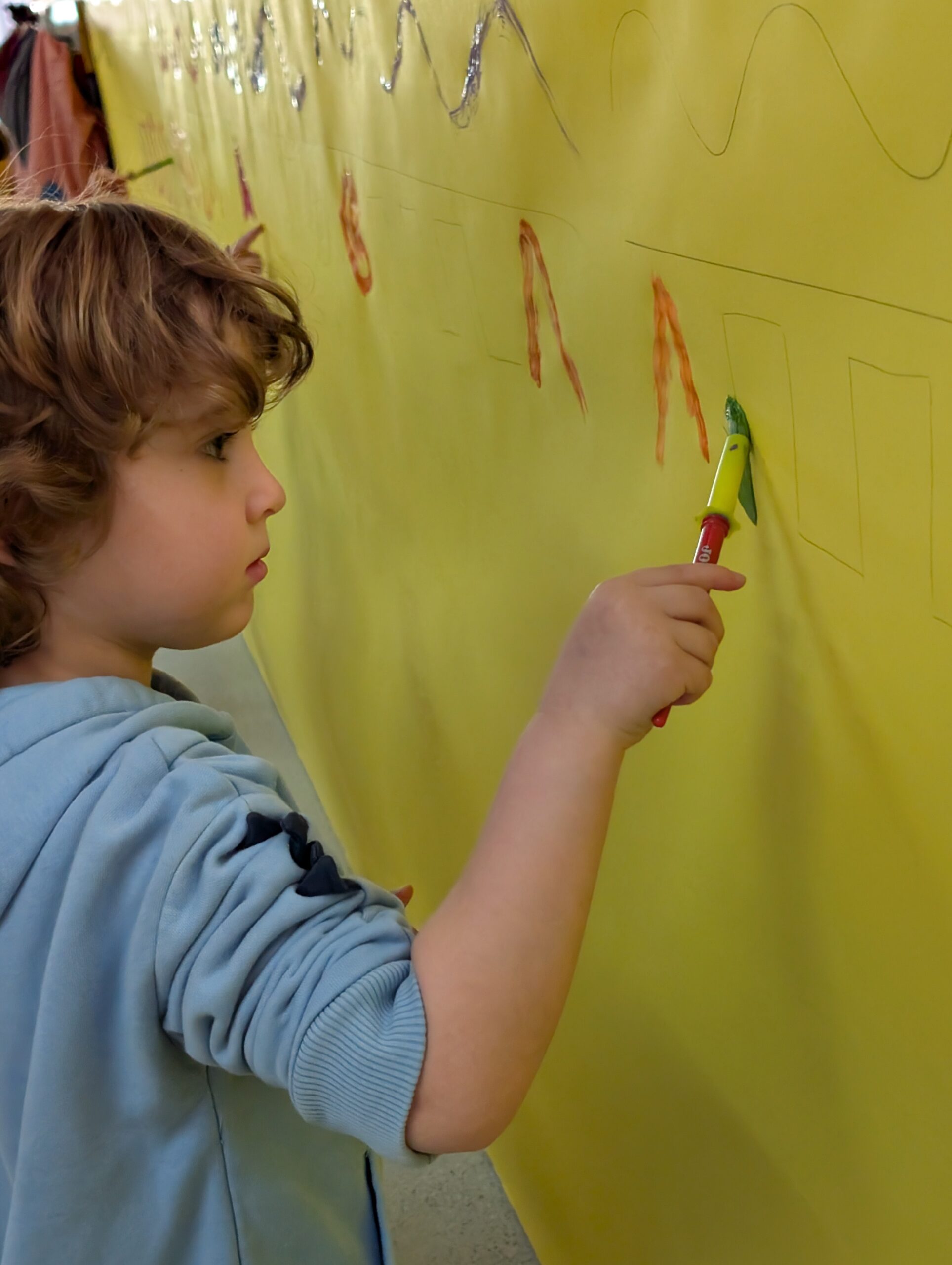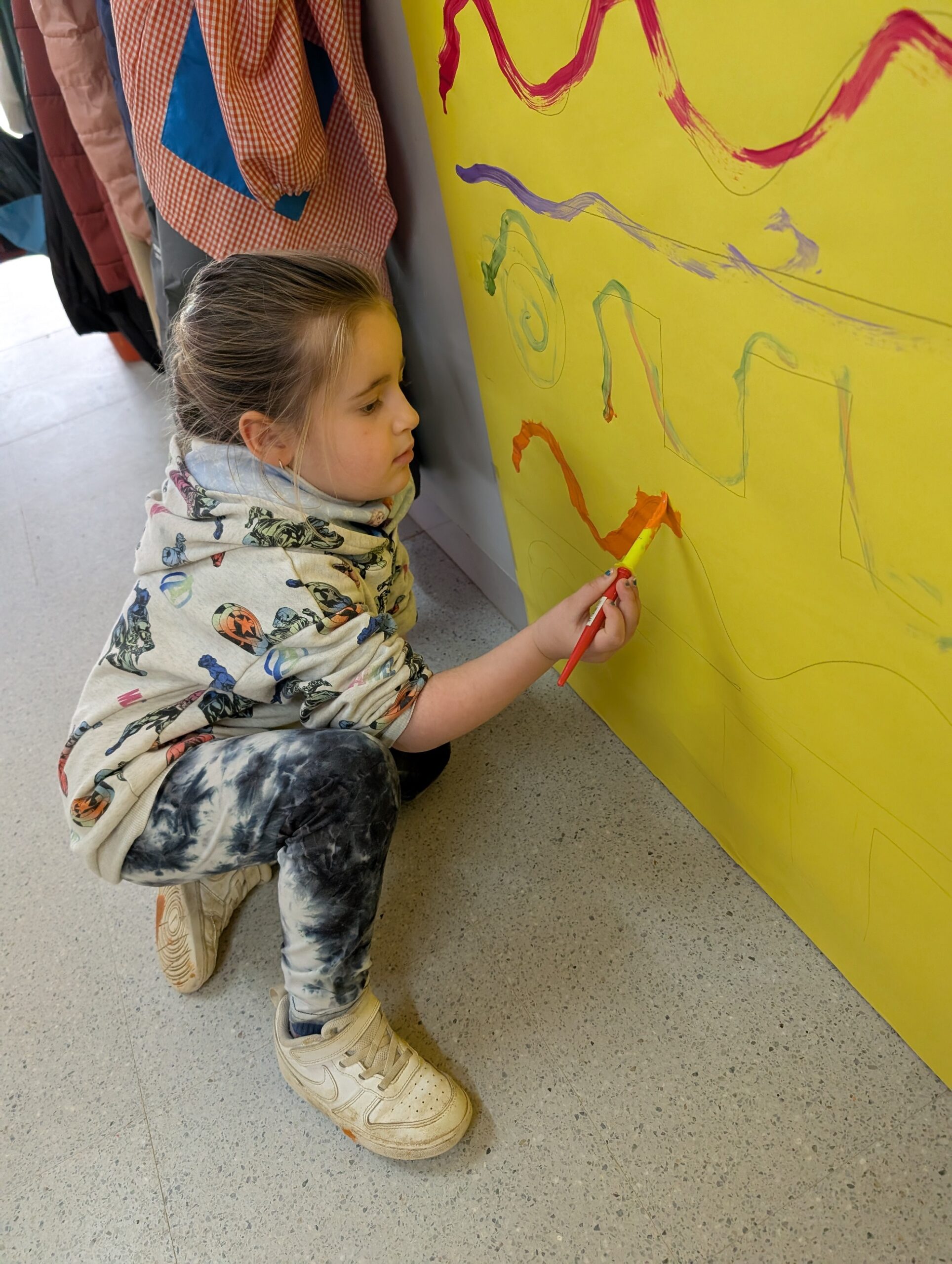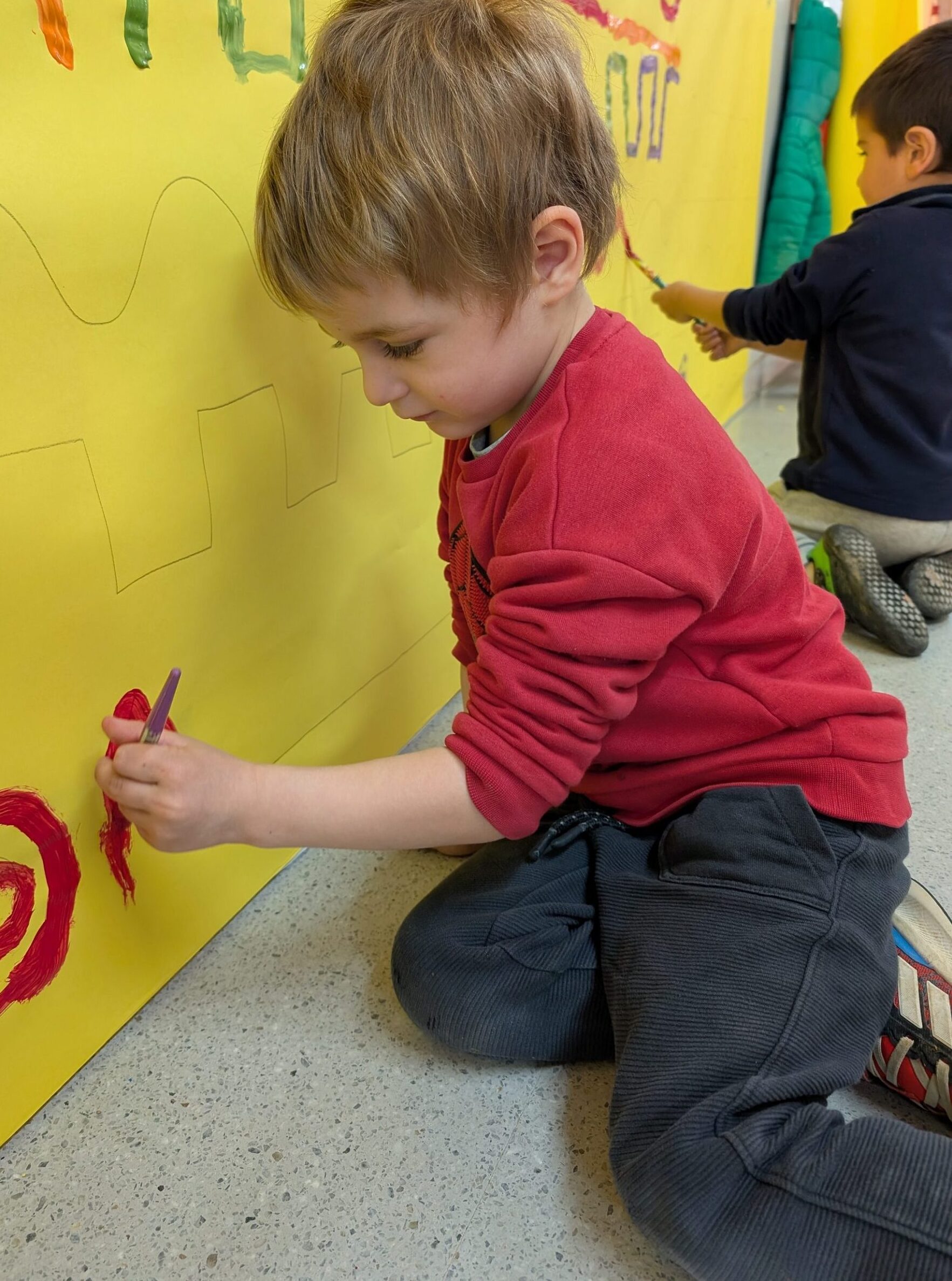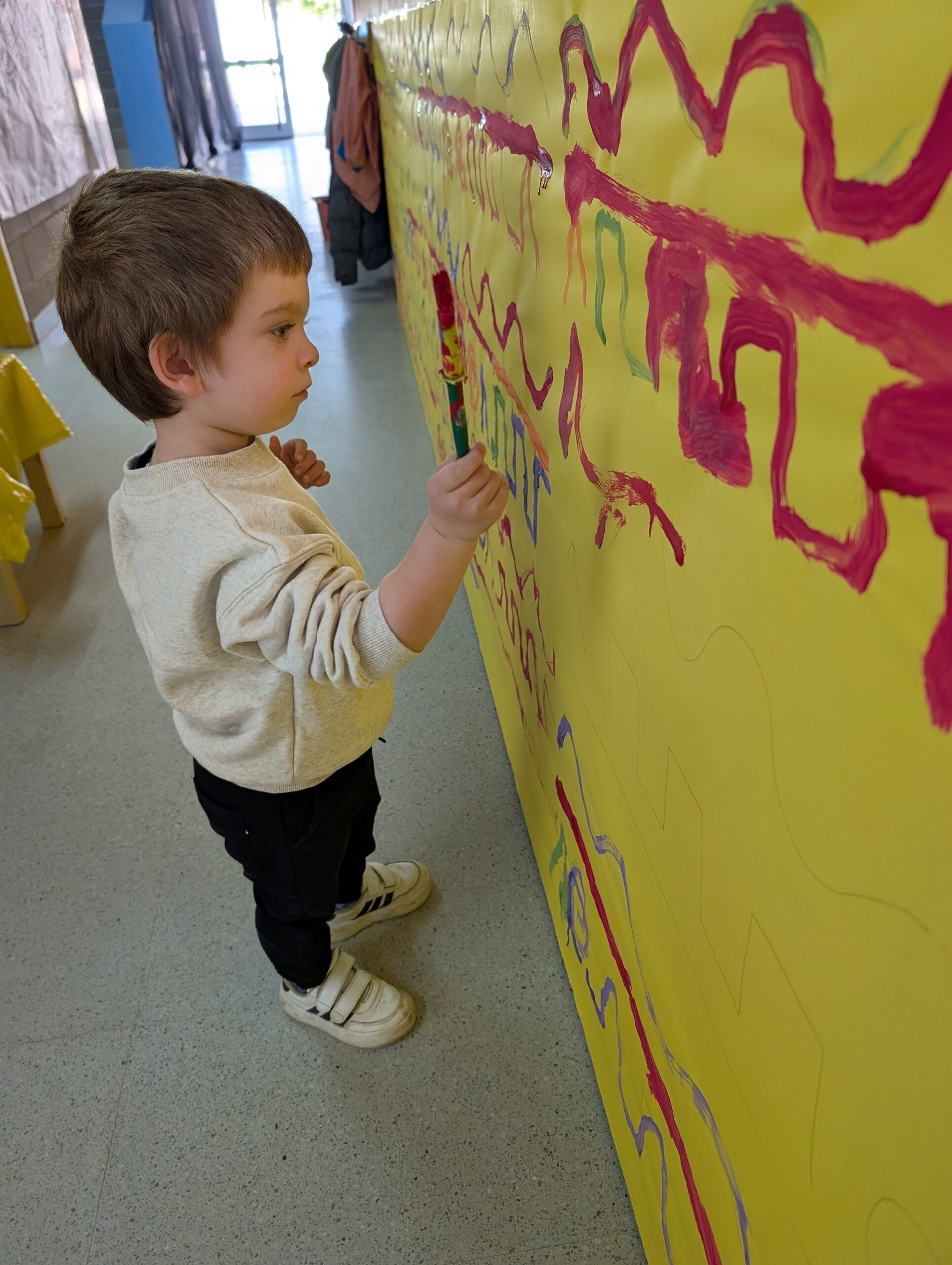 Els infants d’I3 ens engresquem molt amb les propostes proposades per les mestres, aquesta setmana, hem treballat el traç amb pintura de colors vius. Les propostes dels diferents traços que dinamitzem a Educació Infantil, divertides i viscudes com un joc més, és un treball previ de les habilitats que ajudaran els alumnes en el llenguatge escrit.