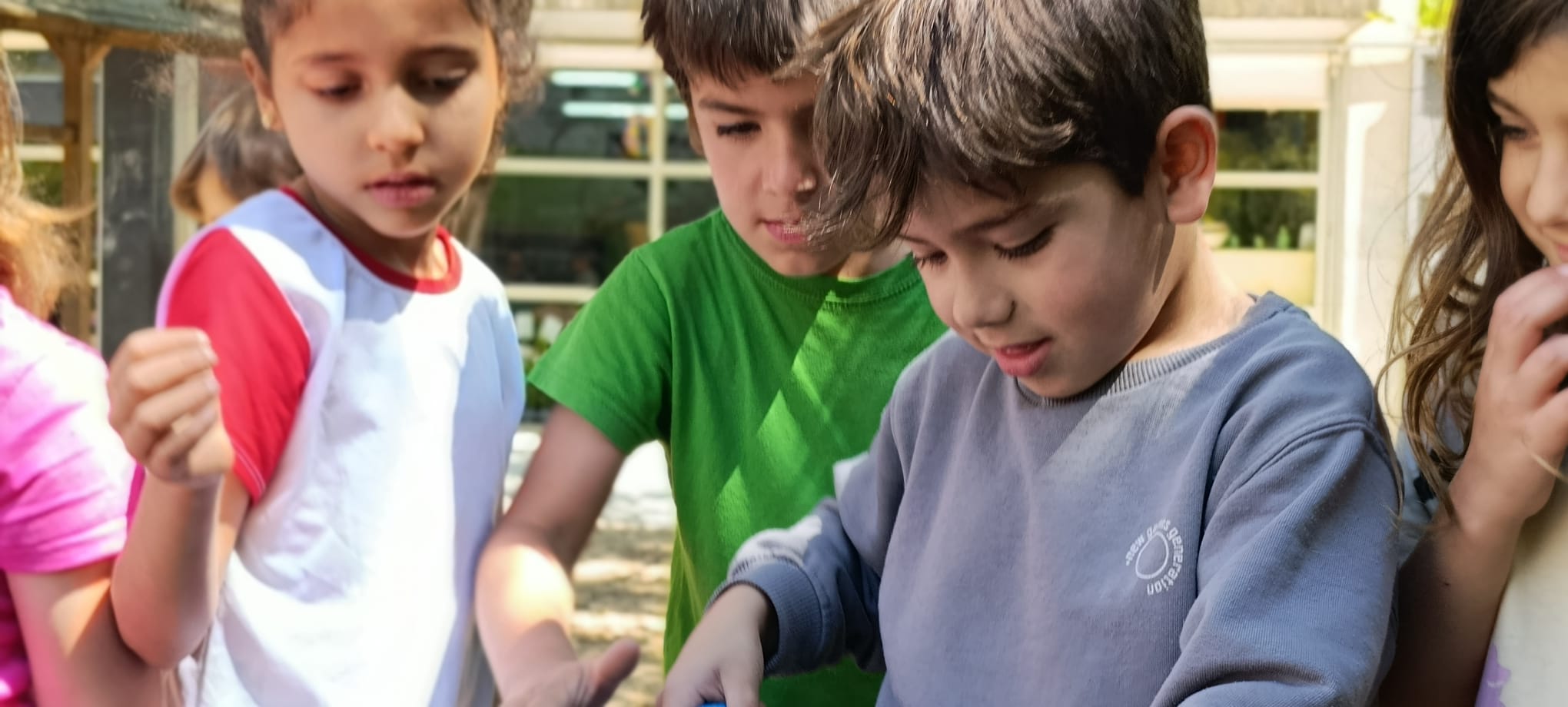 El cant dels ocells, el suau brunzit dels insectes en volar, els trons o la forta pluja caient són alguns dels sons d’aquesta estació tan explosiva que ens acompanyen en les nostres descobertes de primavera! Els grans d’I5 gaudim i aprenem dels espais exteriors mentre observem amb lupes les flors i els insectes, els dibuixem, plantem al nostre hort escolar, mengem maduixetes silvestres, reguem els nostres caps d’ase, etcètera. Visca la primavera!