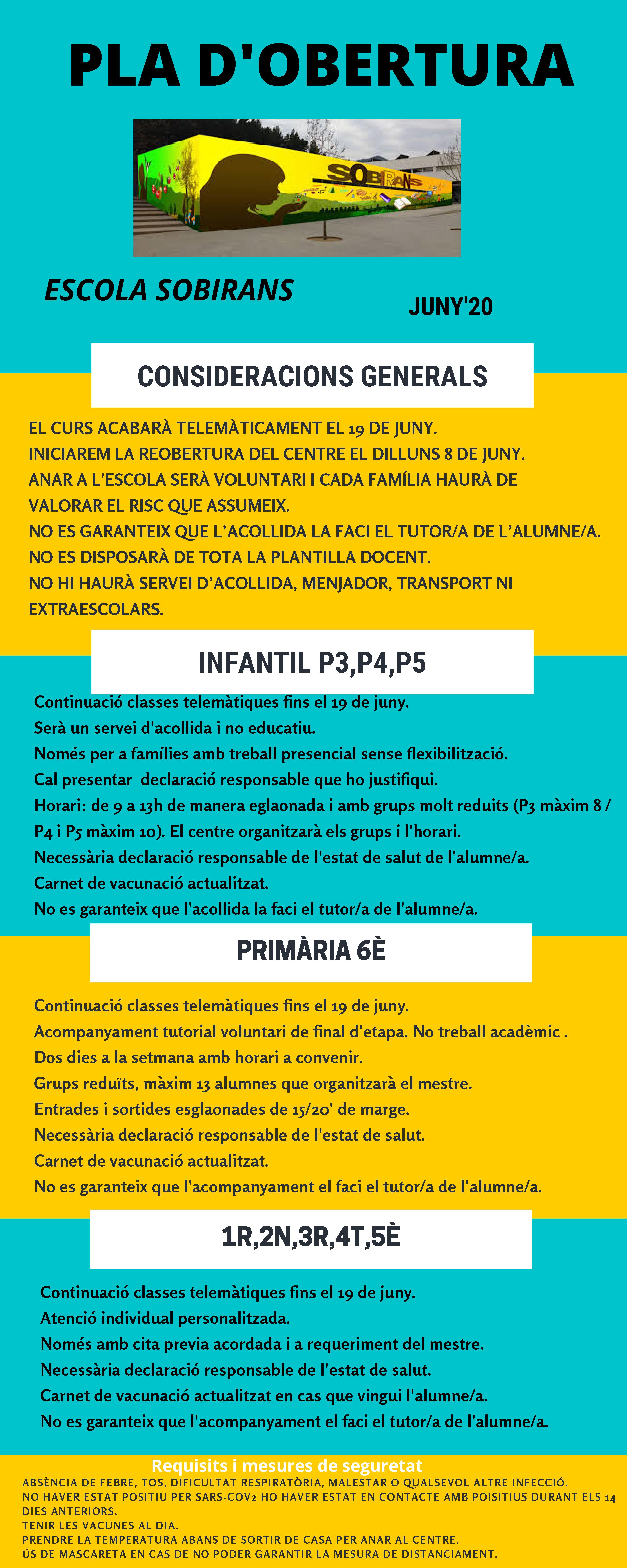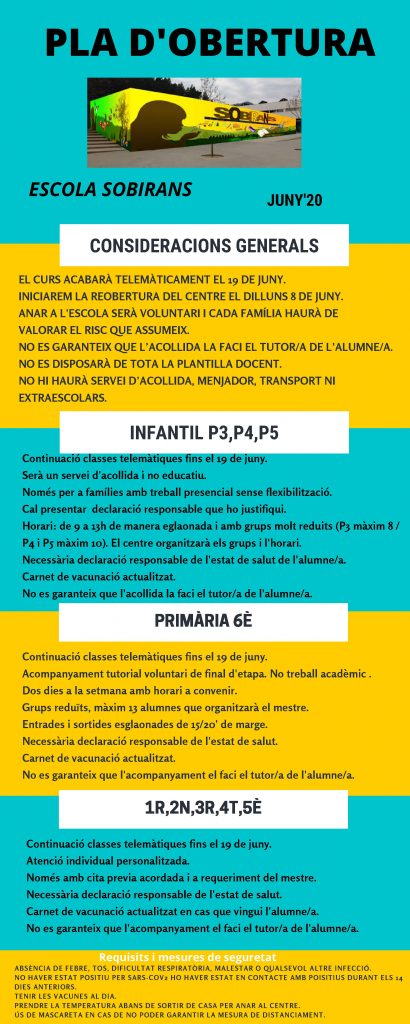Seguint les instruccions del Departament d’Educació, cal publicar a la web del centre el Pla d’obertura en cas que entrem en la fase 2 i es compleixin les condicions de seguretat necessàries.