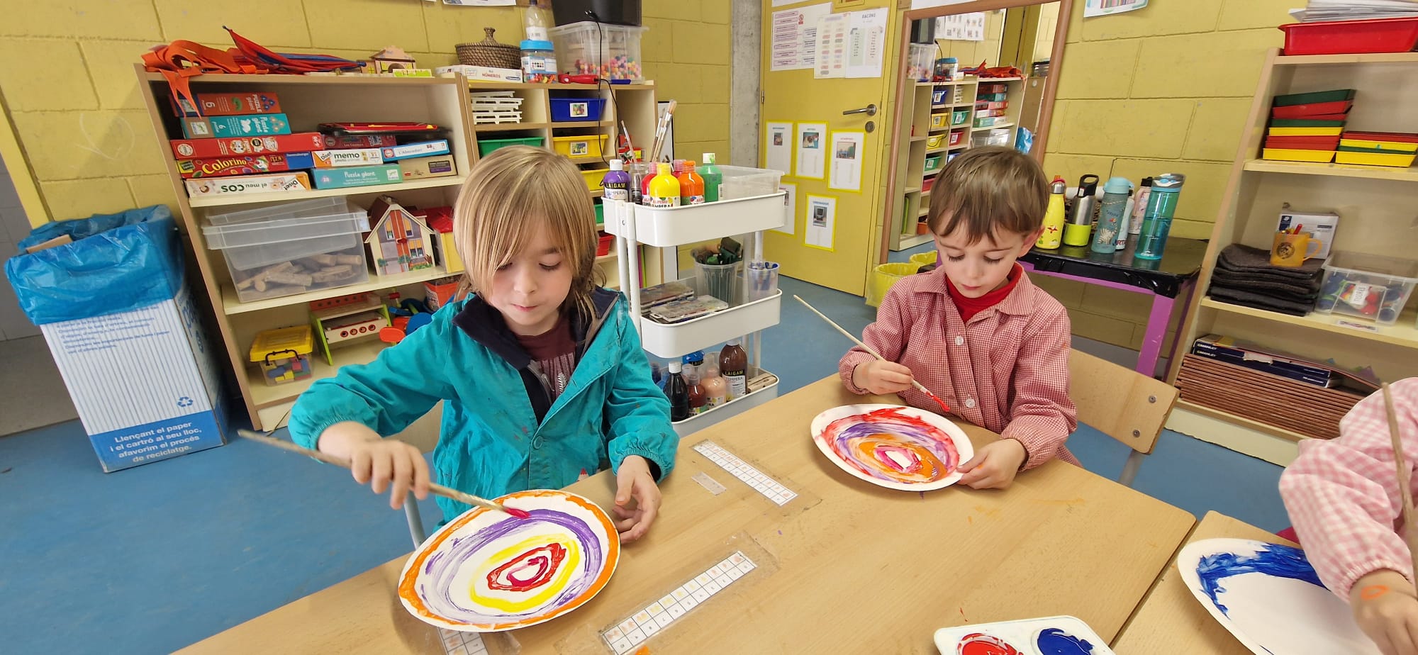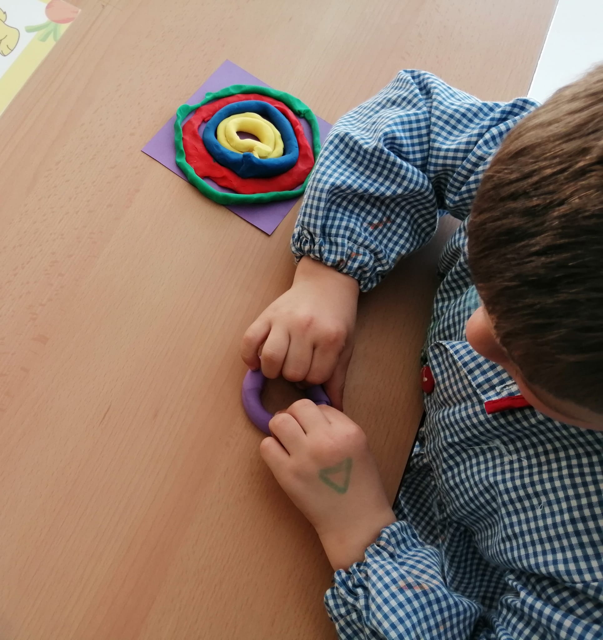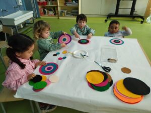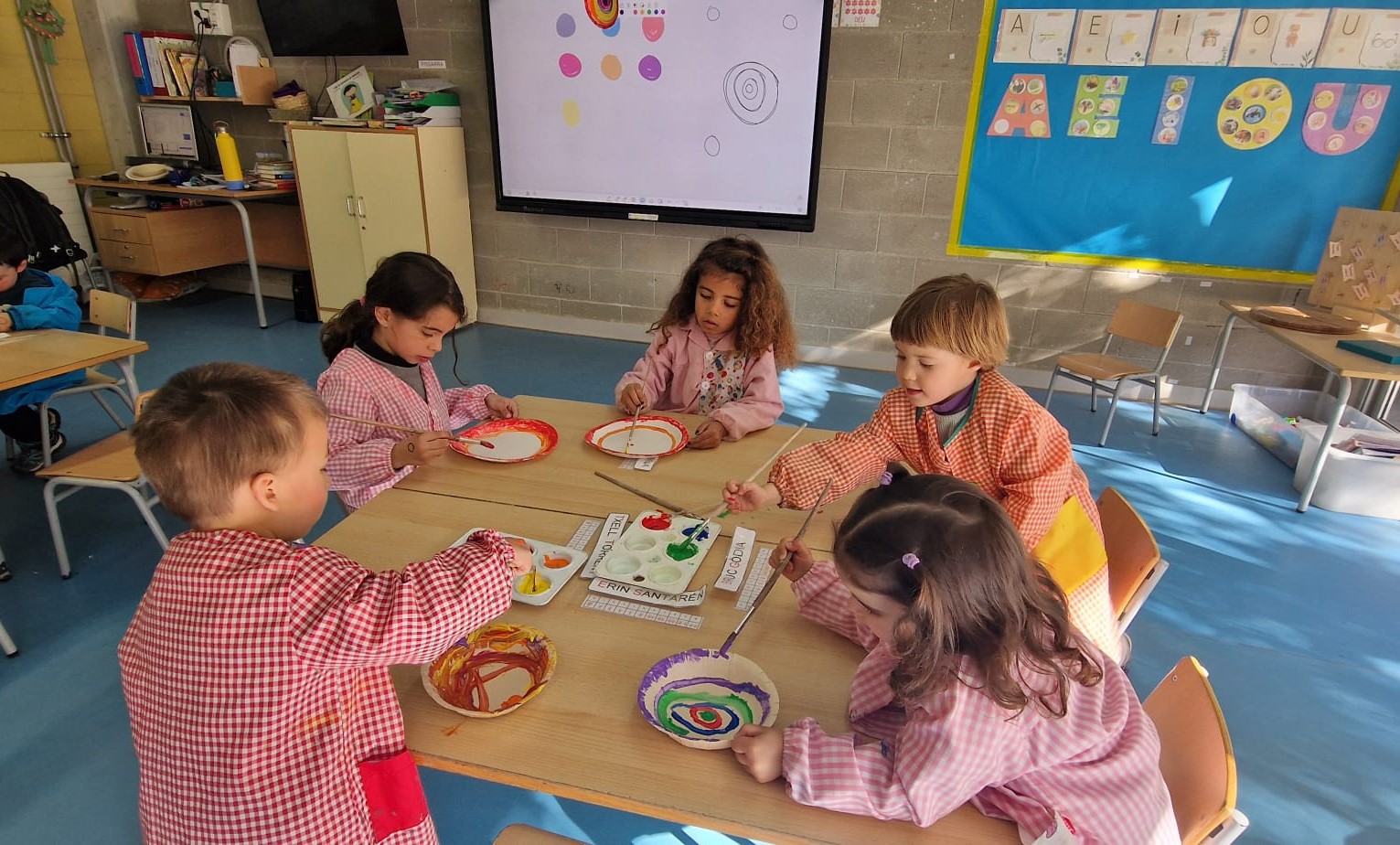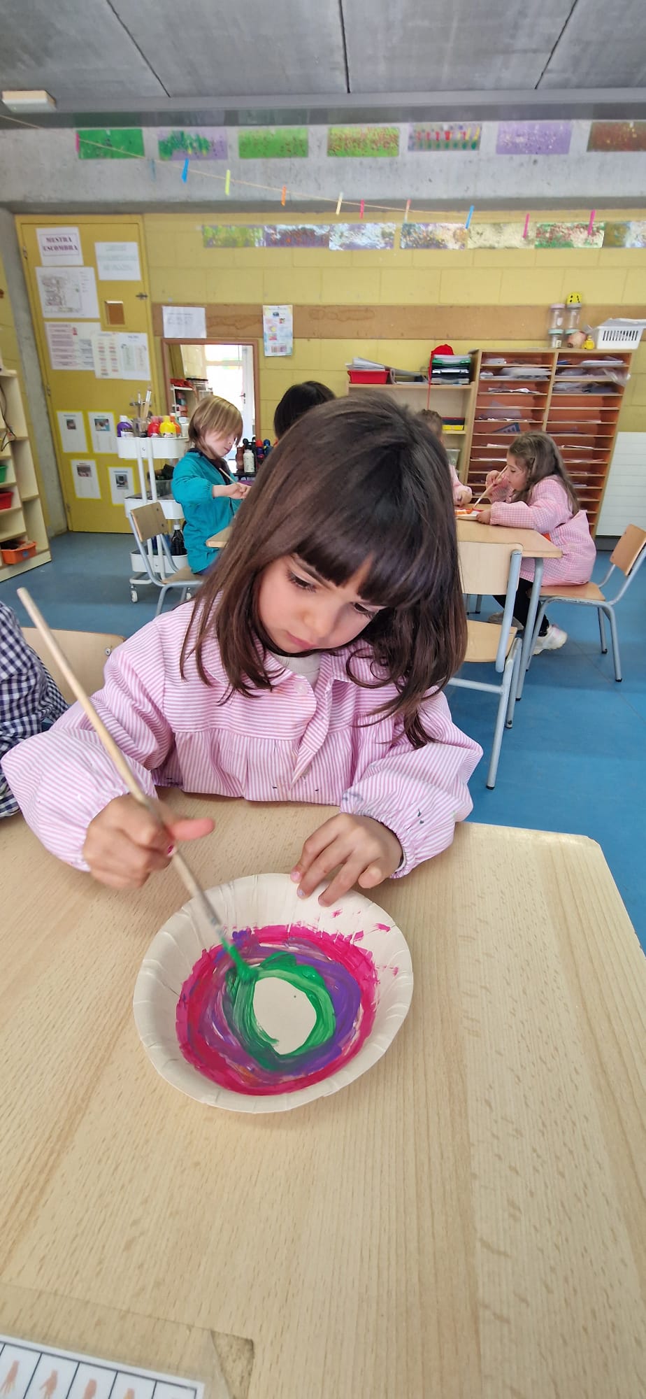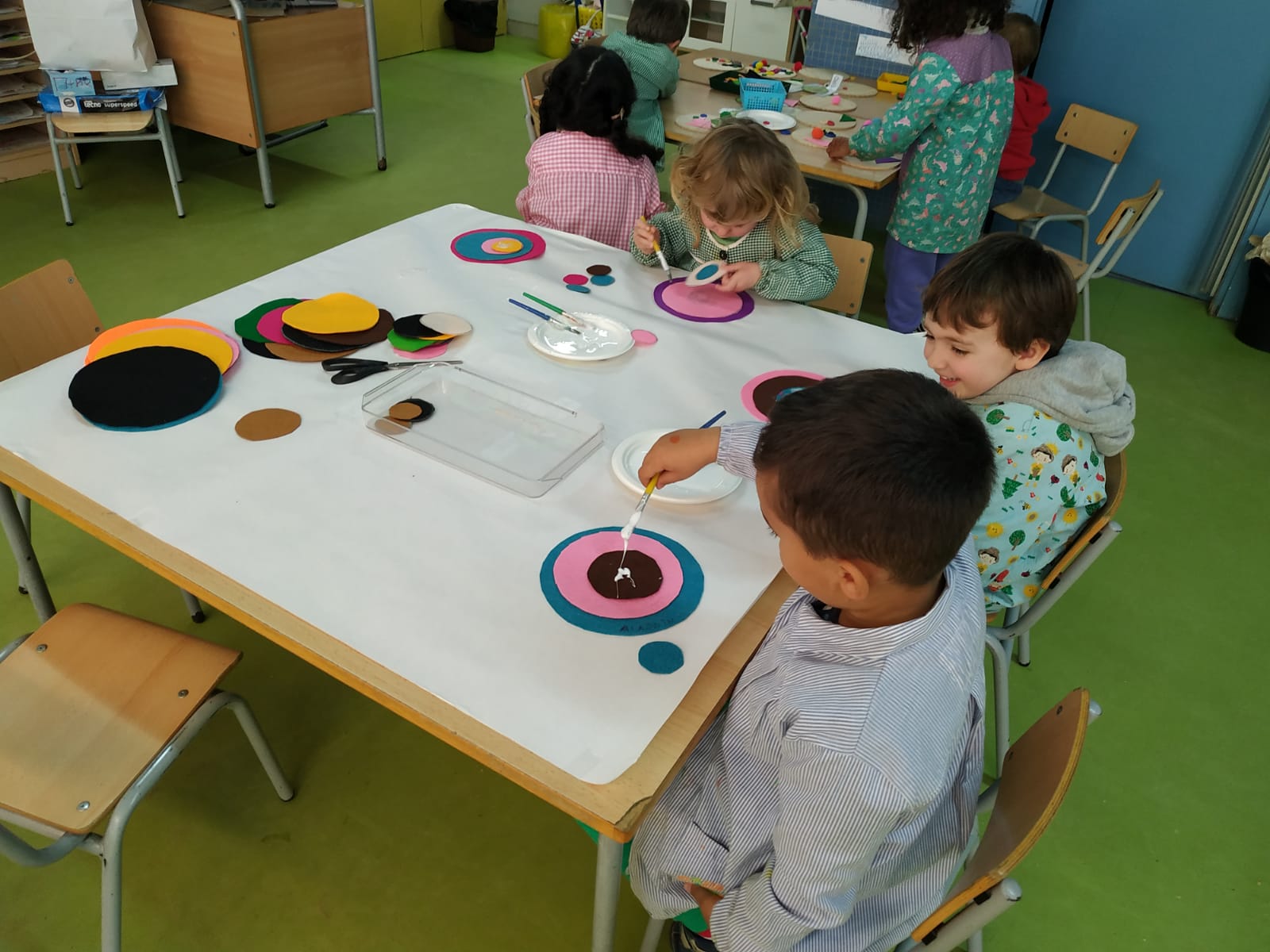 Els nens i nenes d’infantil hem descobert qui era en Vassili Kandinsky, hem observat les seves obres i com treballava, quins colors feia servir, quines formes, línies, etcètera. Aquest dilluns, tot infantil hem representat la seva obra “Cercles concèntrics”, per a fer-ho, hem fet grups de nens i nenes d’I3, I4 i I5 barrejats. Cada grup ha representat la mateixa obra, però, fent servir tècniques i materials diferents, plats de paper, oueres, plastilina, feltres i pedres… Que bé que ens ho hem passat i quines obres tan especials que hem creat!
