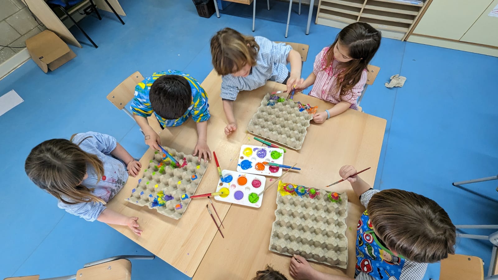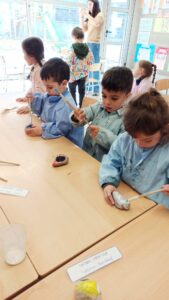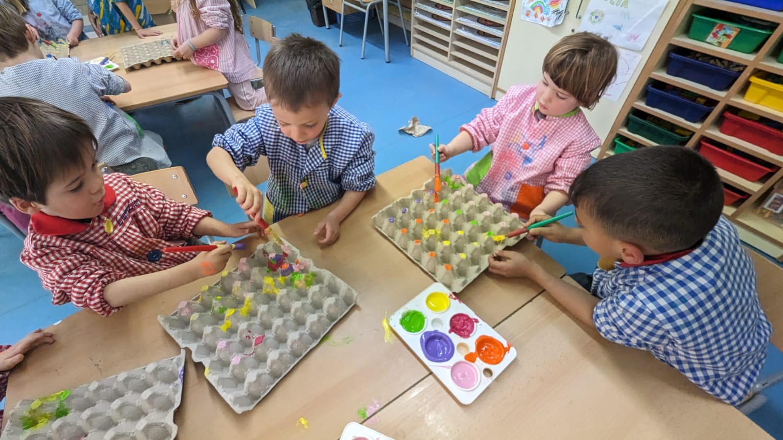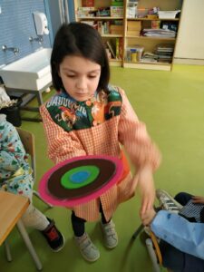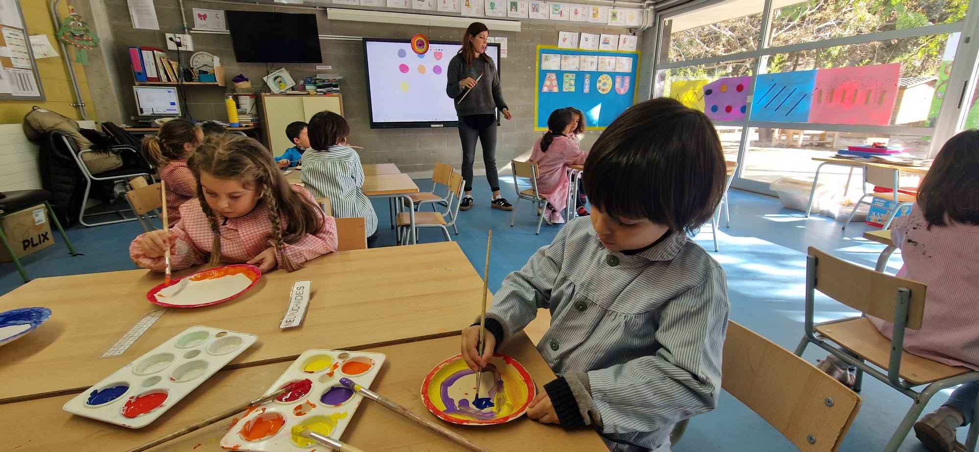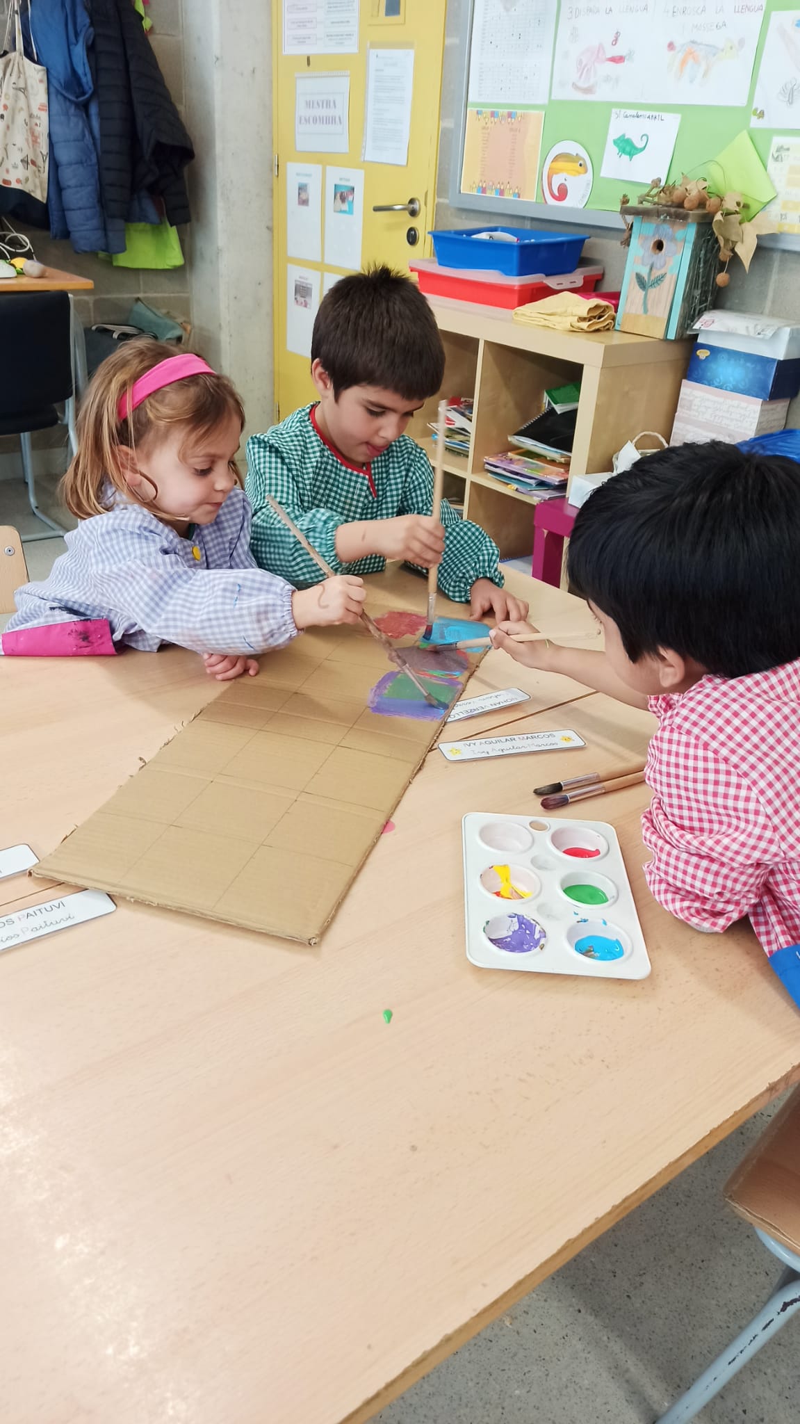 Els nens i nenes d’infantil hem descobert qui era en Vassili Kandinsky, hem observat les seves obres i com treballava, quins colors feia servir, quines formes, línies, etcètera. Aquest dilluns, tot infantil hem representat la seva obra “Cercles concèntrics”, per a fer-ho, hem fet grups de nens i nenes d’I3, I4 i I5 barrejats. Cada grup ha representat la mateixa obra, però, fent servir tècniques i materials diferents, plats de paper, oueres, plastilina, feltres i pedres… Que bé que ens ho hem passat i quines obres tan especials que hem creat!