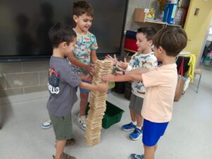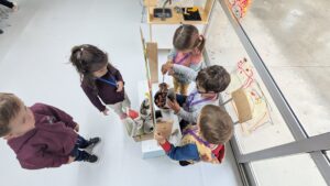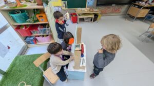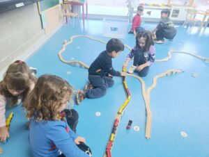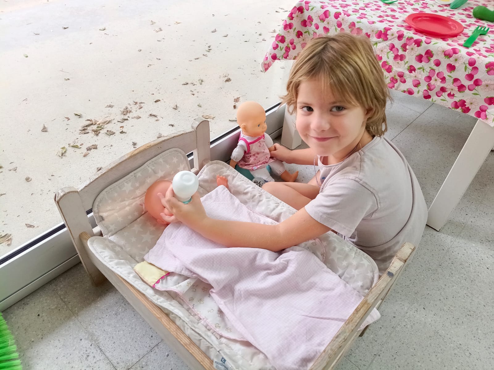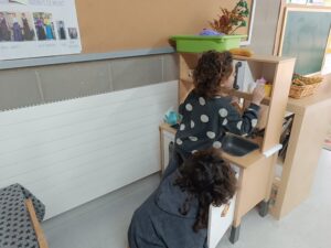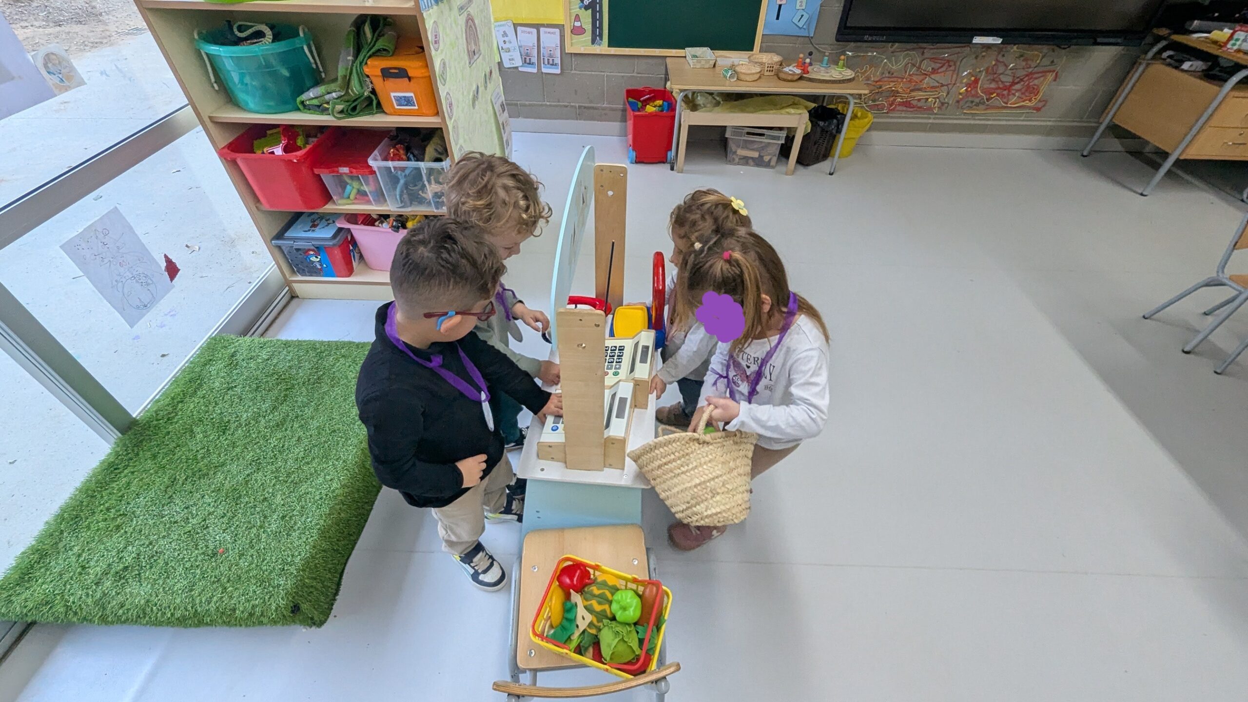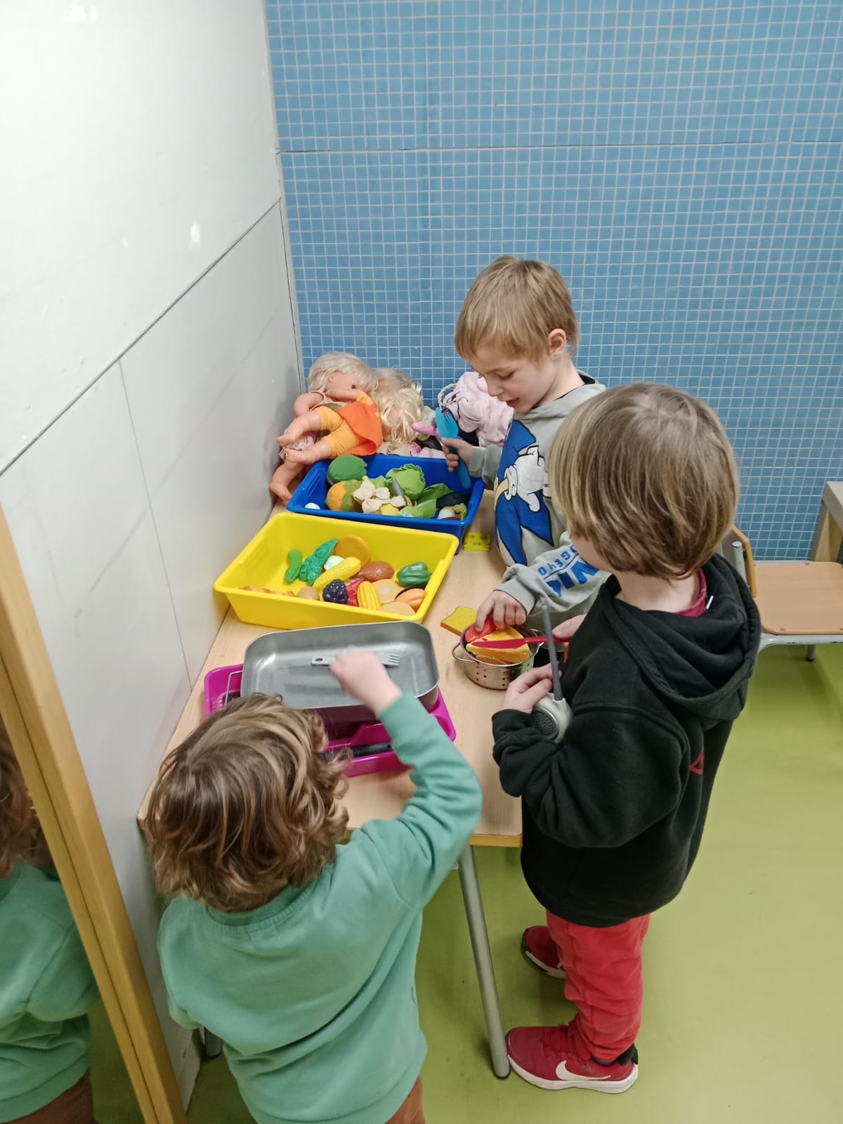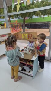 Els nens i les nenes d’infantil ens encanta jugar. El moment de joc simbòlic serveix per adquirir altres rols, estar de tu a tu, crear altres mons, imitar accions de la vida quotidiana d’una manera tranquil·la i segura. És clau en el desenvolupament dels infants. Quan interpreten rols i inventen històries, els nens i nenes aprenen llenguatge, creativitat, expressió emocional i convivència. A l’escola fomentem aquests moments perquè són una manera natural i divertida d’aprendre i comprendre el món.