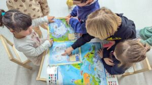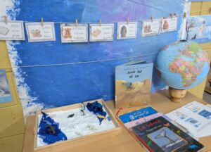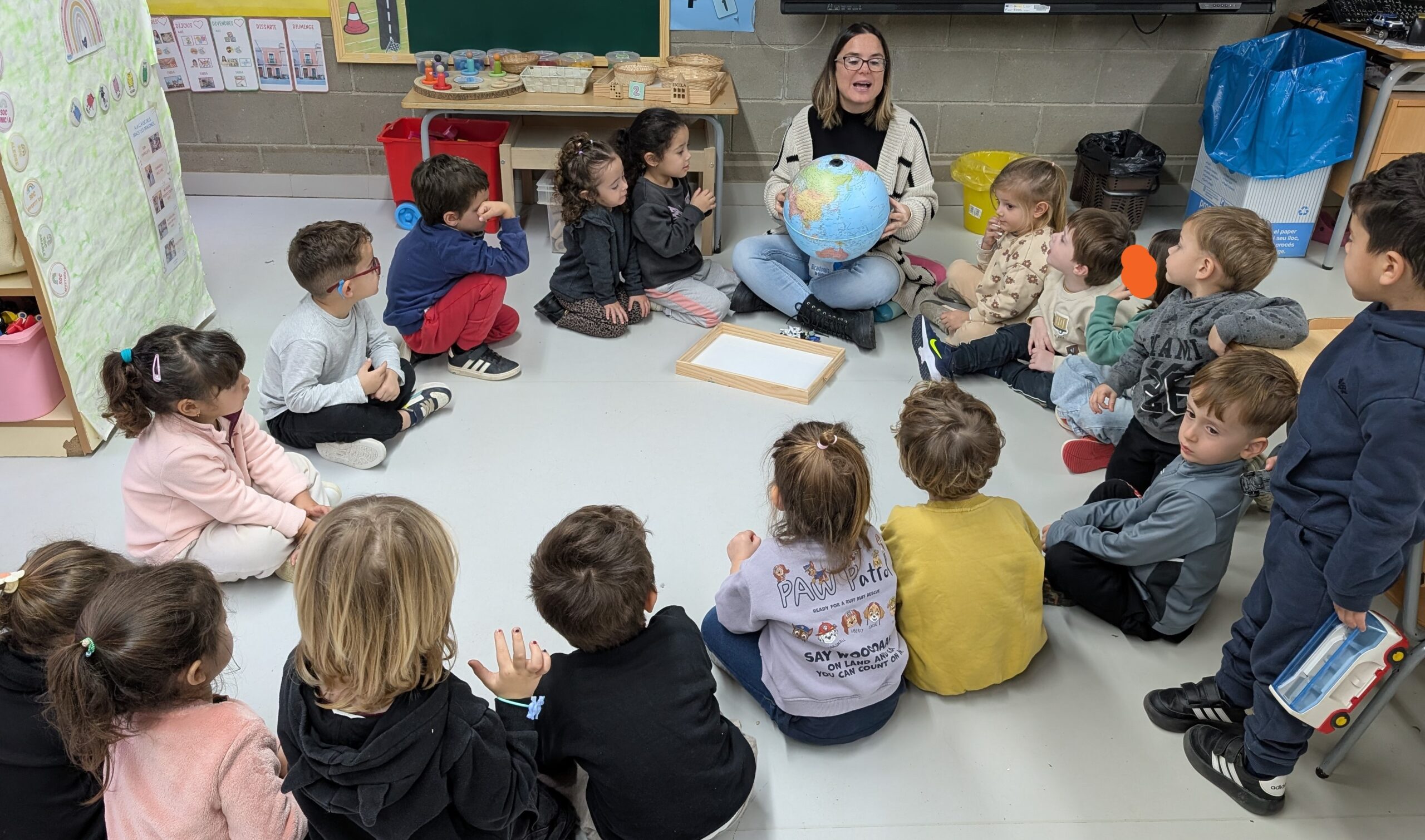 Els dracs i les dragones hem començat a parlar de l’hivern: del fred, dels colors i de tot allò que ens fa pensar en aquesta estació. Ben aviat van aparèixer animals com els pingüins, els ossos polars o les foques… i una gran pregunta: aquests animals viuen aquí, a Catalunya? A partir del diàleg i la curiositat dels infants, vam iniciar una petita investigació per descobrir on viuen. Amb la bola del món vam situar les zones fredes del planeta i també el lloc on vivim nosaltres, tot descobrint que formem part del planeta Terra, el “planeta blau”. A la biblioteca de l’escola vam buscar llibres, observar imatges i, en assemblea, vam triar quins ens ajudaven més a aprendre. Tot aquest procés ha donat lloc a l’inici d’un projecte i a la creació d’un petit racó de l’hivern, que ens convida a continuar explorant i aprenent