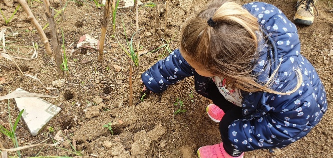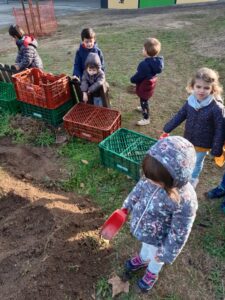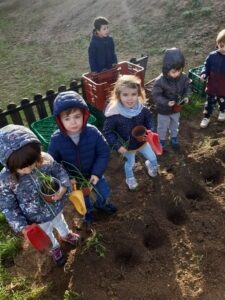 Com ja sabeu, un cop assolit el vincle de nenes i nens amb les seves i seu mestres, vam començar a eixamplar horitzons i anar a l’hort tot fent anglès. Mig grup una setmana i mig grup la següent acompanyats de Carles i Judit. La passada setmana va tocar observació general i plantar cebes i coliflors al crestall número 9 i, aquesta, ídem amb el que havíem previst conservar en testos. I amunt que fa pujada! 🙃