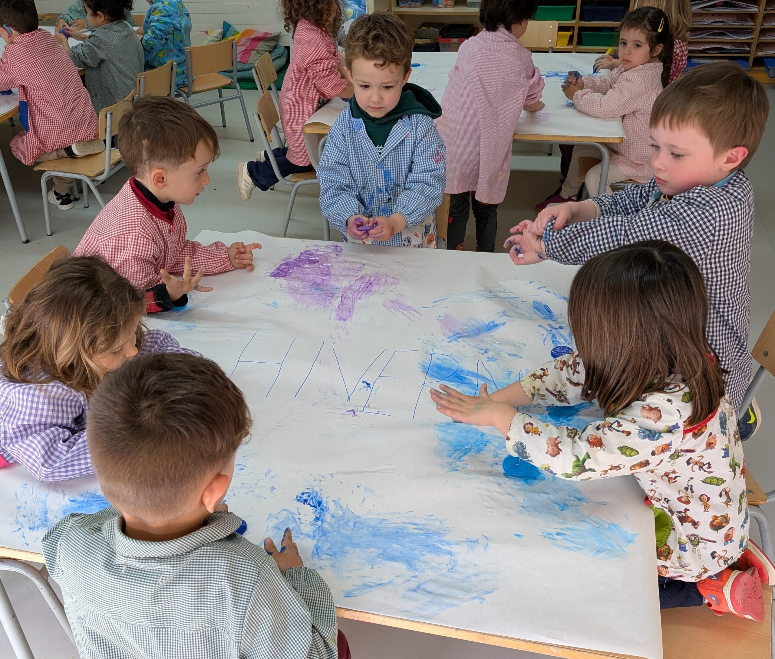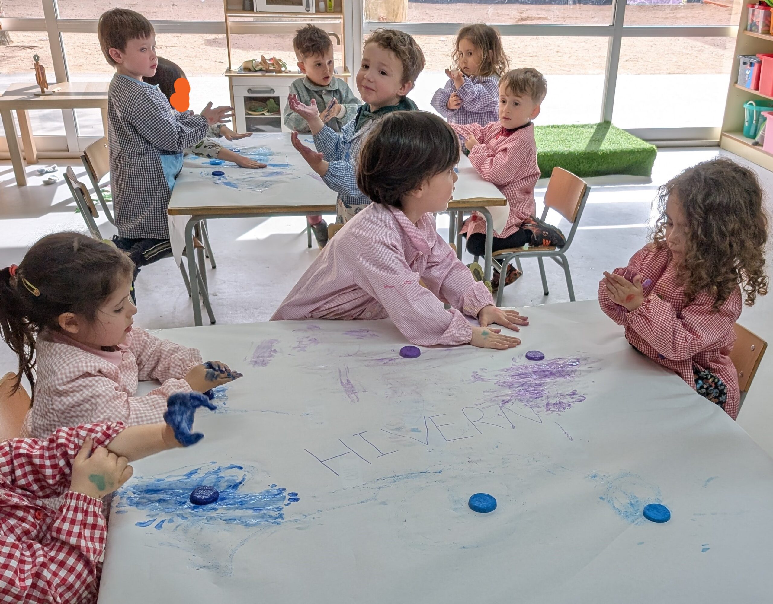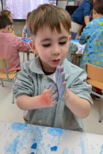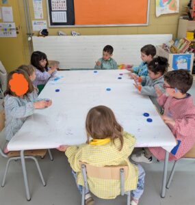 Els nens i nenes d’Infantil 3 hem decidit fer un experiment per veure si funcionava. Vam posar aigua amb pintura dins d’uns recipients, i després d’esperar una estona vam pensar que ho posaríem al congelador per veure què passava. Després d’uns dies vam descobrir que l’aigua s’havia congelat i que podíem pintar amb gel de colors de l’hivern! Ha estat molt divertit, però també hem descobert una cosa curiosa: quan tocàvem el gel i pintàvem, el gel anava desapareixent. Què està passant? Ostres, el gel es desfà!