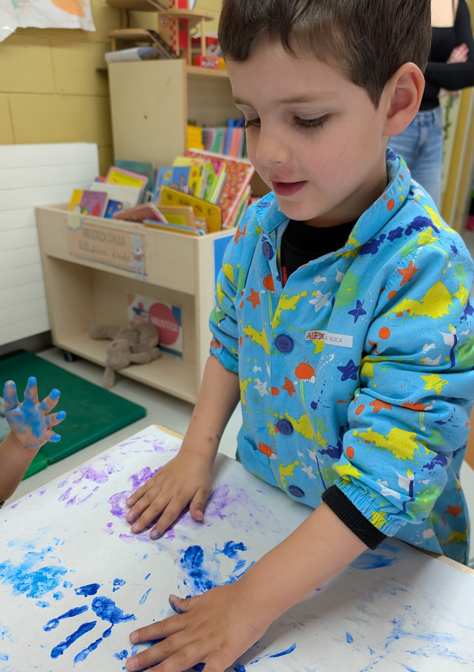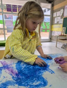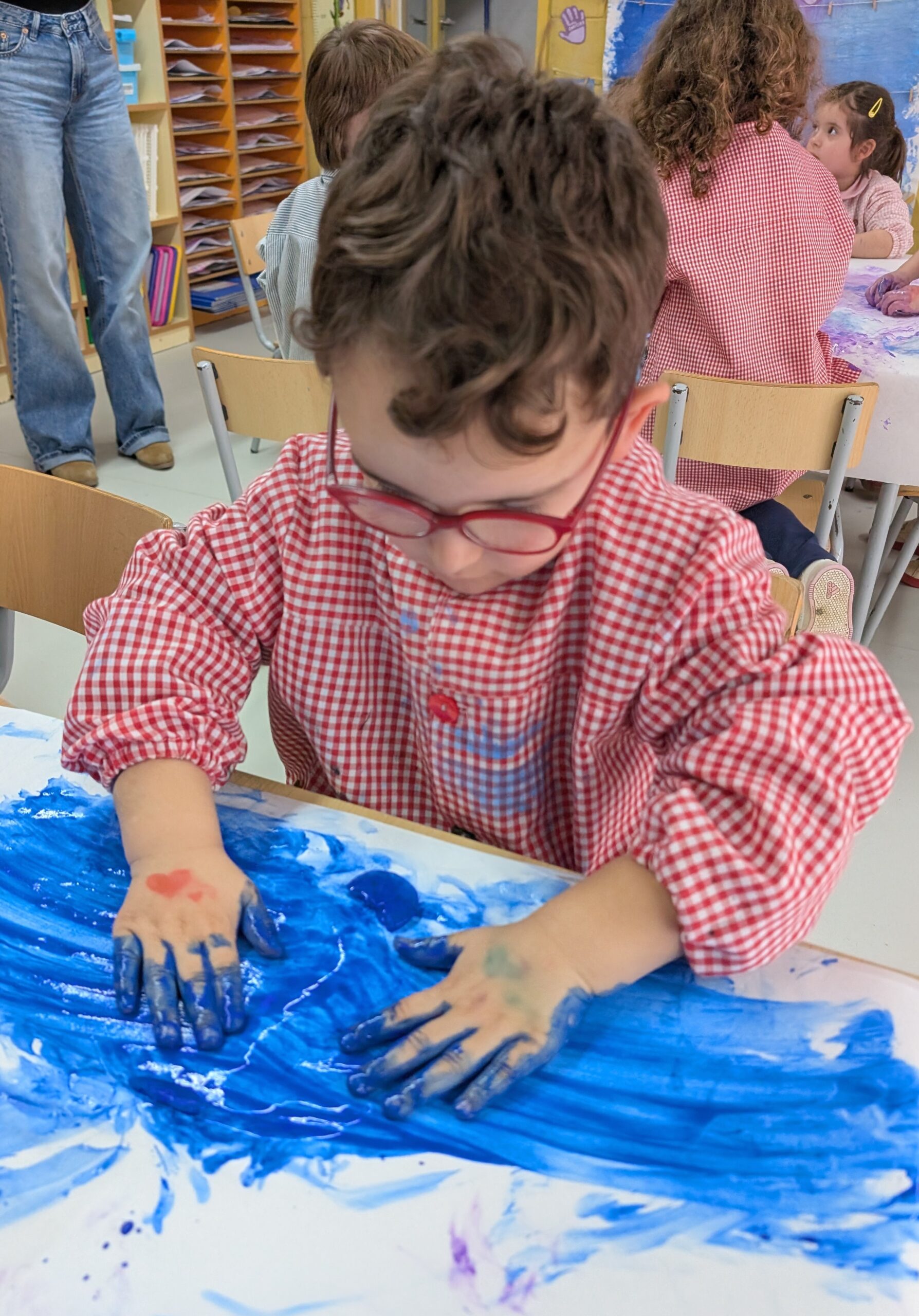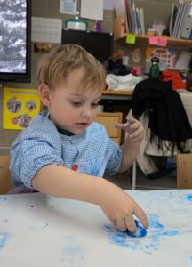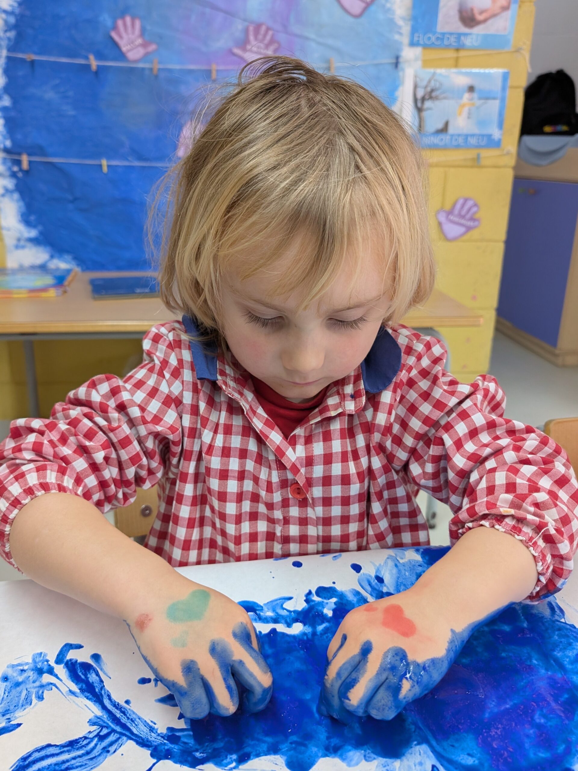 Els nens i nenes d’Infantil 3 hem decidit fer un experiment per veure si funcionava. Vam posar aigua amb pintura dins d’uns recipients, i després d’esperar una estona vam pensar que ho posaríem al congelador per veure què passava. Després d’uns dies vam descobrir que l’aigua s’havia congelat i que podíem pintar amb gel de colors de l’hivern! Ha estat molt divertit, però també hem descobert una cosa curiosa: quan tocàvem el gel i pintàvem, el gel anava desapareixent. Què està passant? Ostres, el gel es desfà!