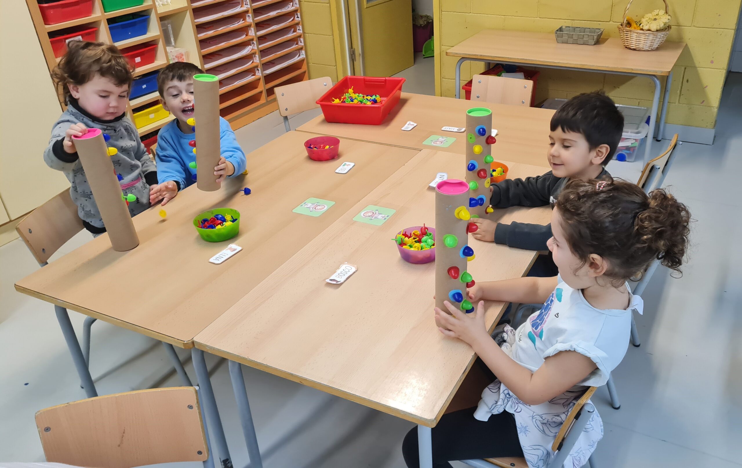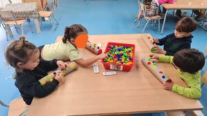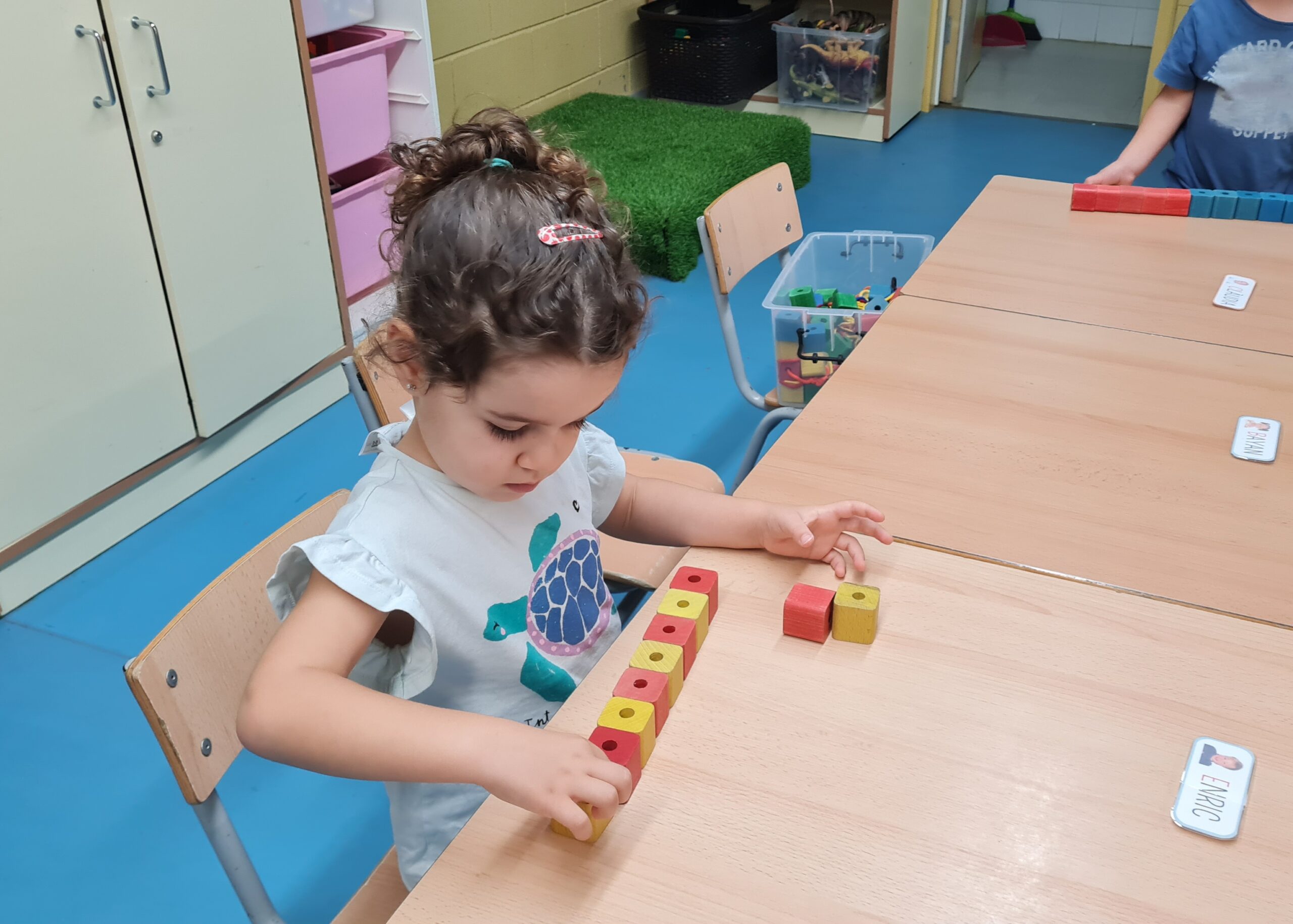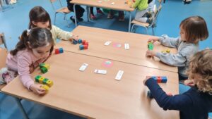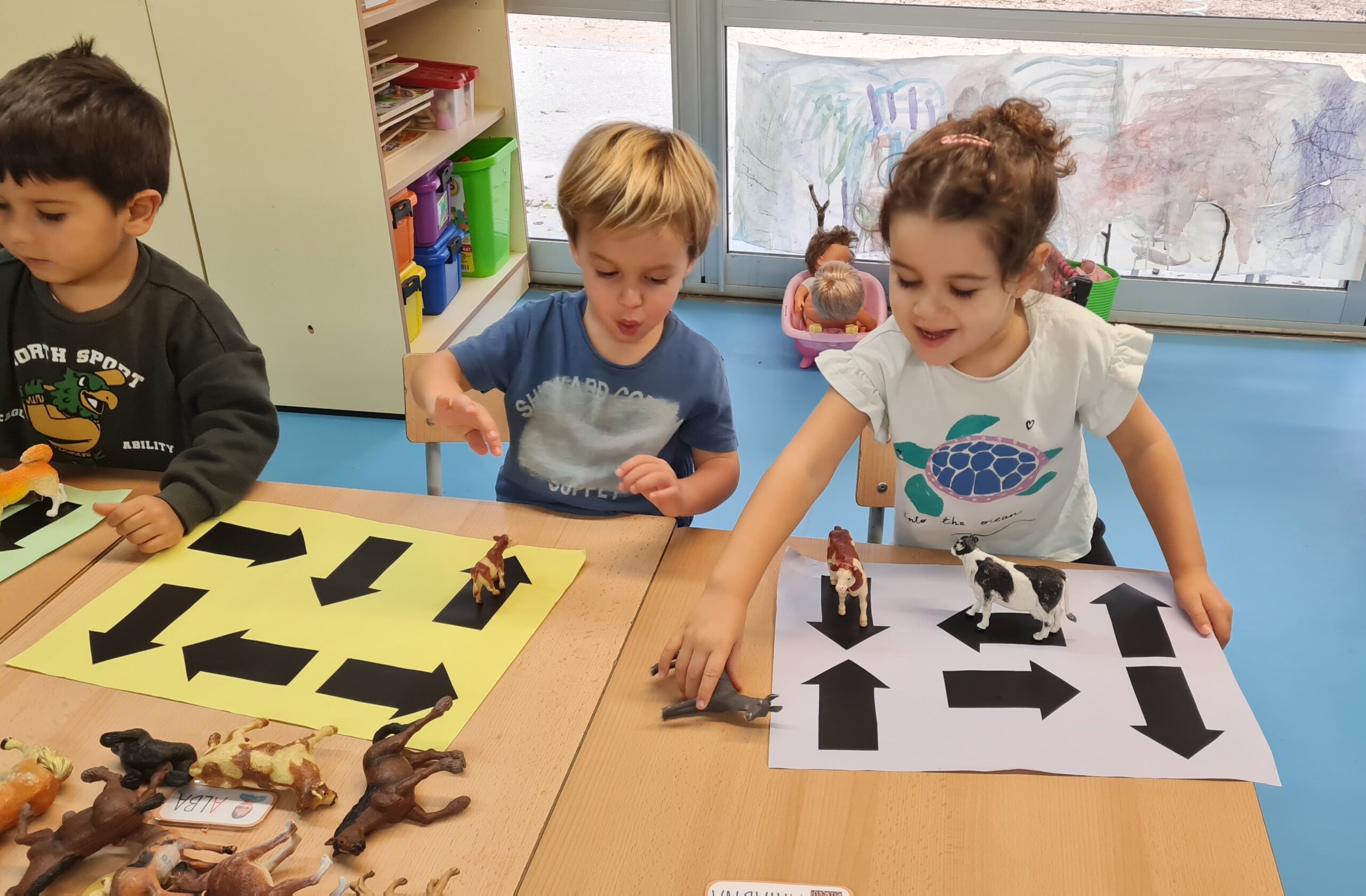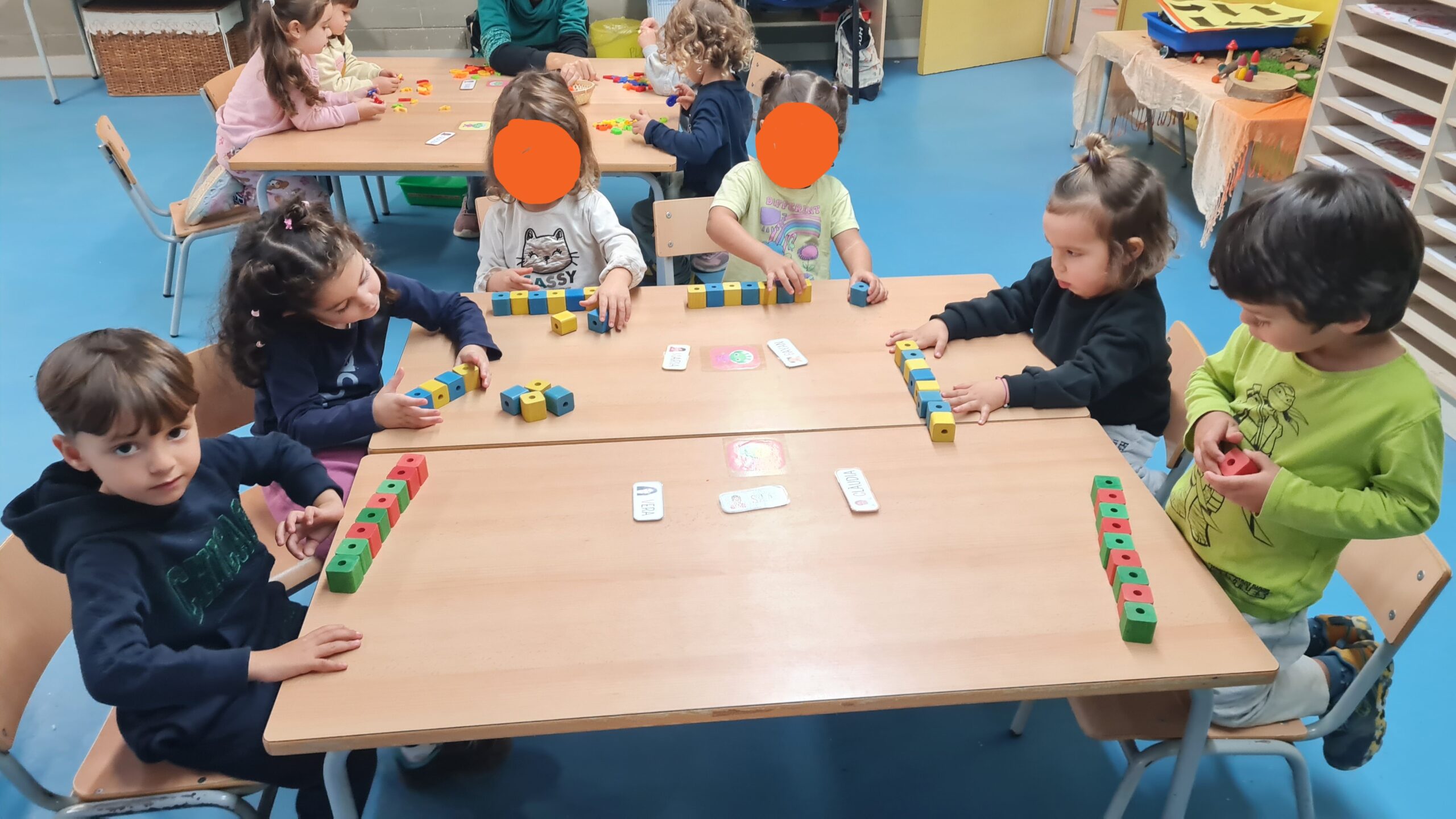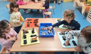 Us deixem una petita mostra d’algunes de les activitats que proposem a racons de matemàtiques d’I3. En aquesta sessió hem treballat la classificació per colors, la discriminació de números i lletres, les seriacions i la direccionalitat. Som petits i petites, però ens concentrem i tot jugant, aprenem molt!
