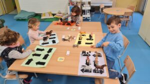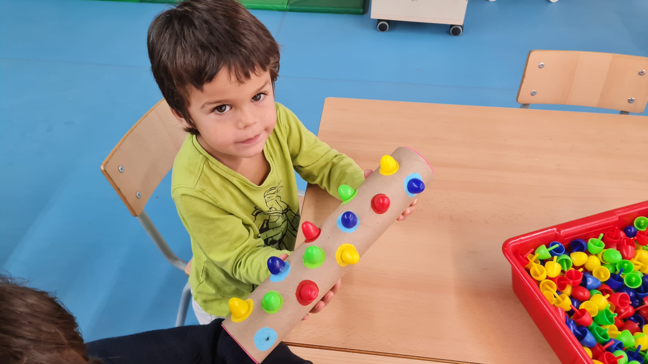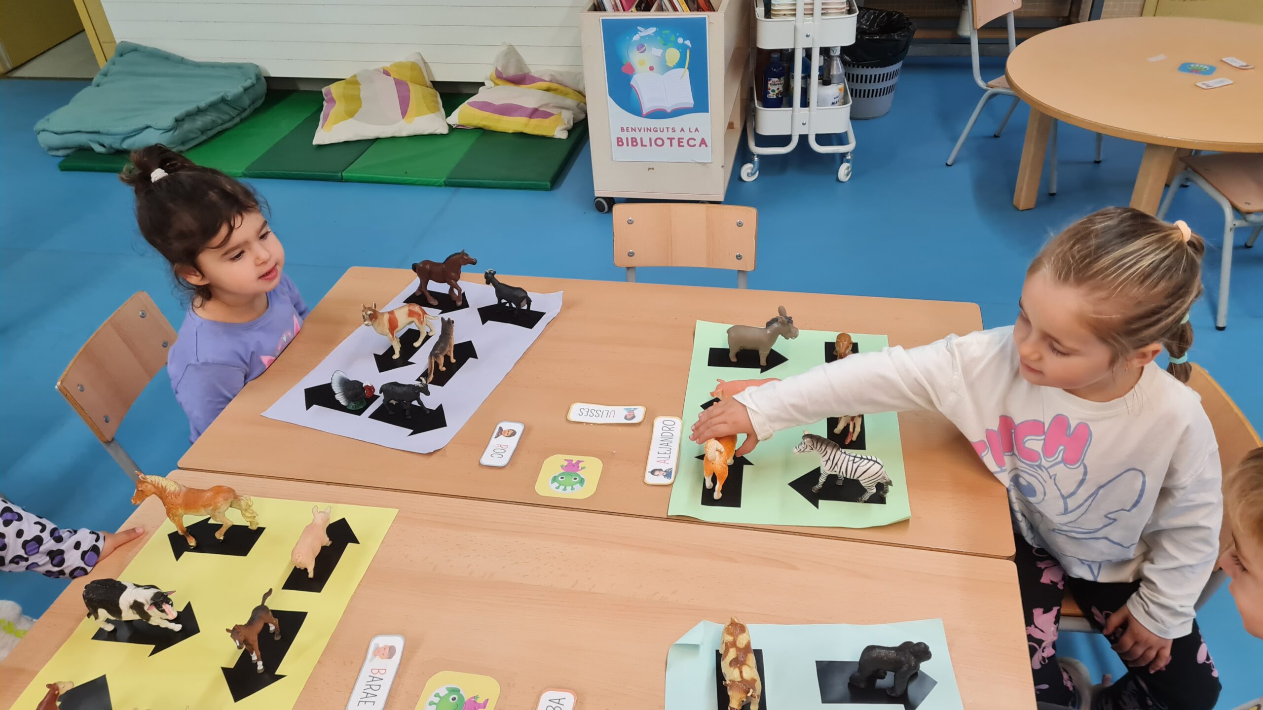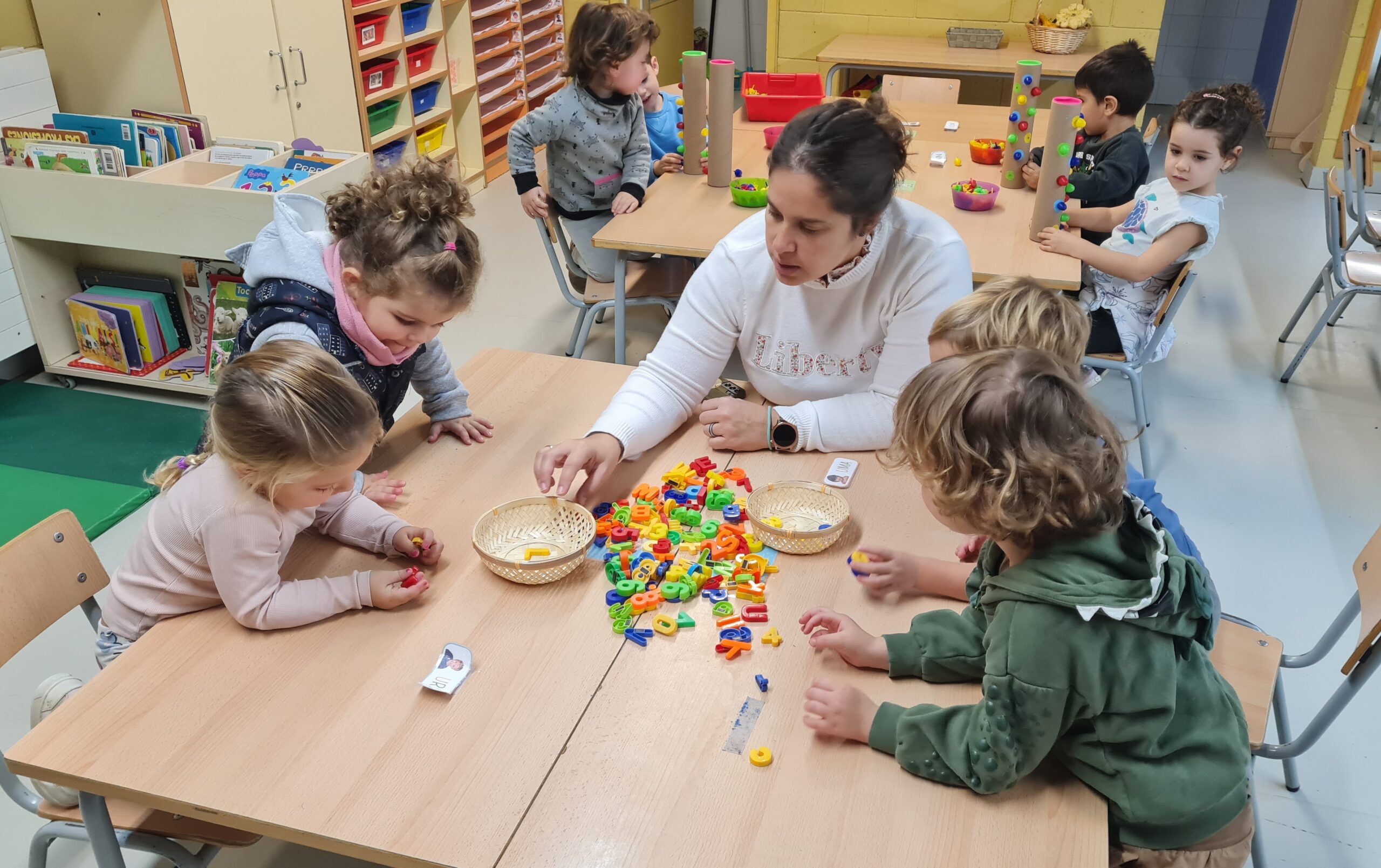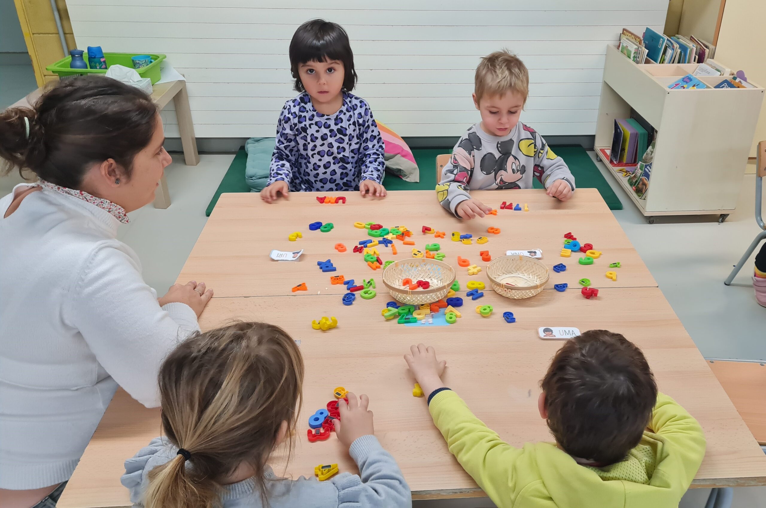 Us deixem una petita mostra d’algunes de les activitats que proposem a racons de matemàtiques d’I3. En aquesta sessió hem treballat la classificació per colors, la discriminació de números i lletres, les seriacions i la direccionalitat. Som petits i petites, però ens concentrem i tot jugant, aprenem molt!