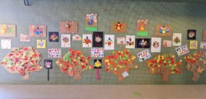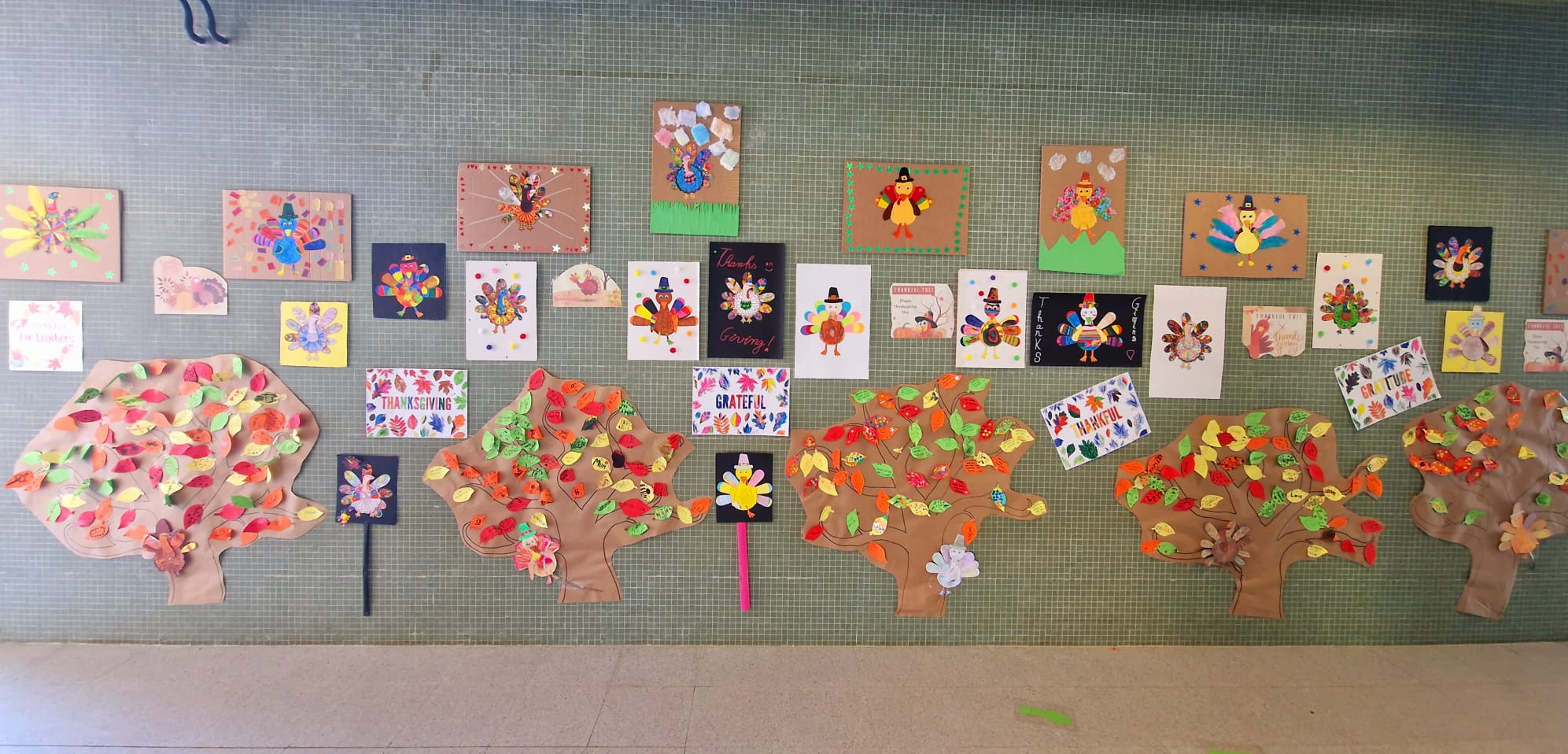 El mateix dia d’Acció de Gràcies cada aula va decorar dos galls d’indis que posteriorment els van mostrar a la resta d’alumnat i professorat amb una desfilada ben divertida. Tothom va gaudir molt de la festa i després de fer un “snack” tots van penjar als “Thankful Trees” (Arbres per agrair) una fulla amb un missatge d’agraïment.