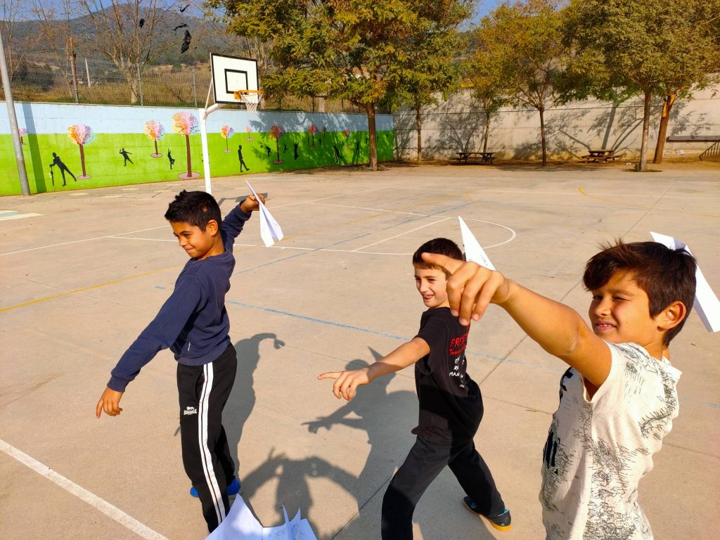 A l’àrea de matemàtiques, hem treballat la unitat de mesura de longitud creant uns avions de paper, i mesurant els metres dels diferents vols. Hem iniciat també el concepte de les mitges aritmètiques!