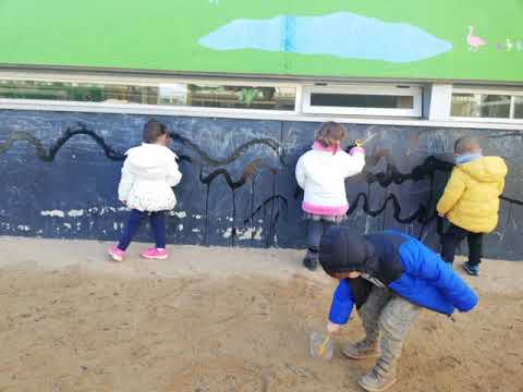 Els nens i nenes d’I5 hem fet aranyes amb pintura i els hi hem posat dos ulls. Primer hem fet grafisme per dibuixar la tela d’aranya, després ens hem pintat les mans de negre i les hem estampat al paper per fer forma d’aranya. Finalment, li hem enganxat dos ulls.