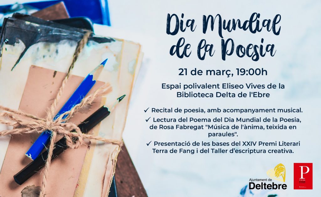 Dia Mundial de la Poesia Feu un comentari / Per admin / 20 de març de 2019 / Pla Lector Portada Les guanyadores del Certamen de Lectura en Veu alta de la nostra escola participaran al recital de poesia que tindrà lloc demà a la biblioteca municipal de Deltebre. Endavant Bianca Casanova i Noa Sánchez!!! 😉