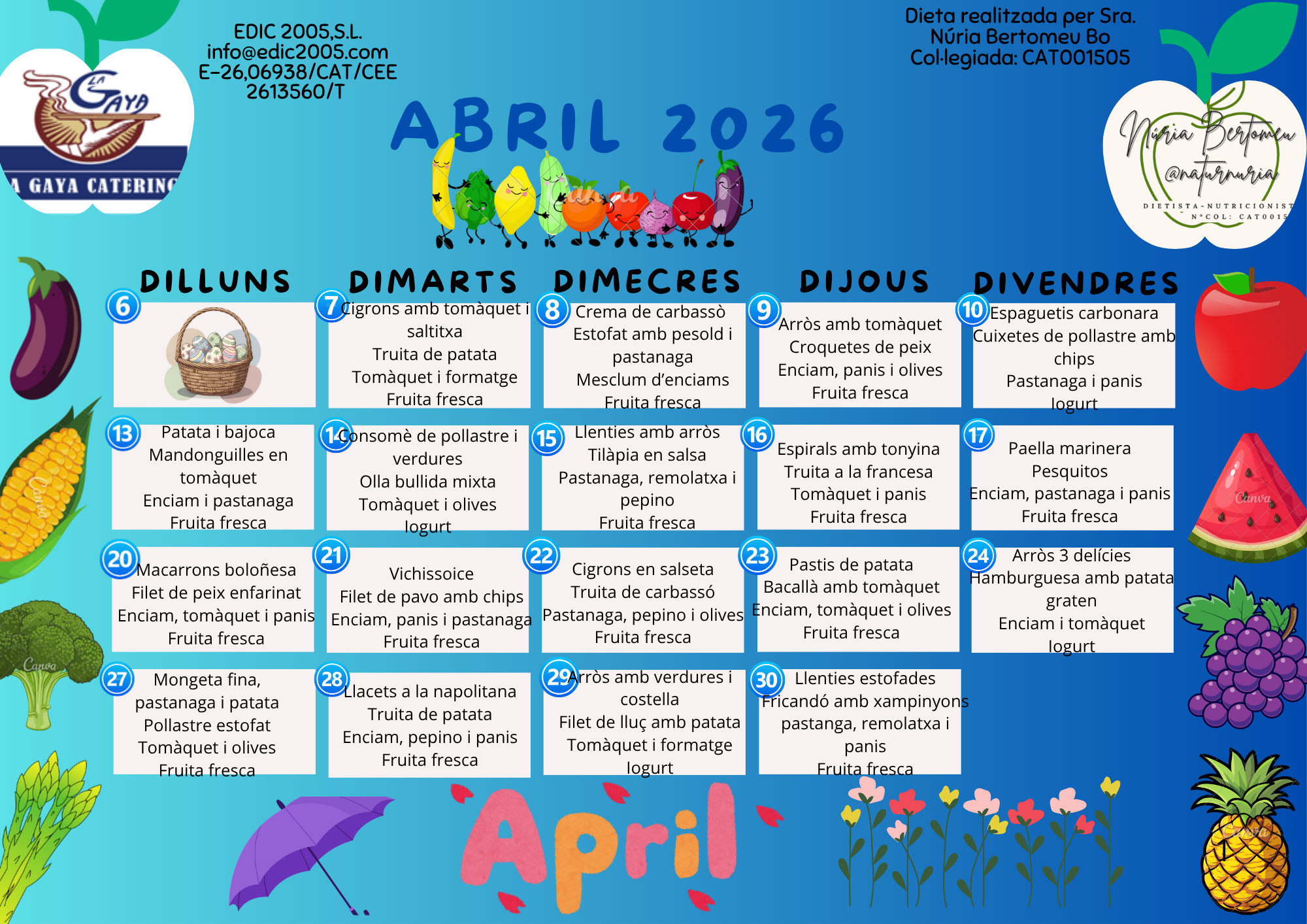 - MENÚ DIARI D’AQUEST MES 🍽: