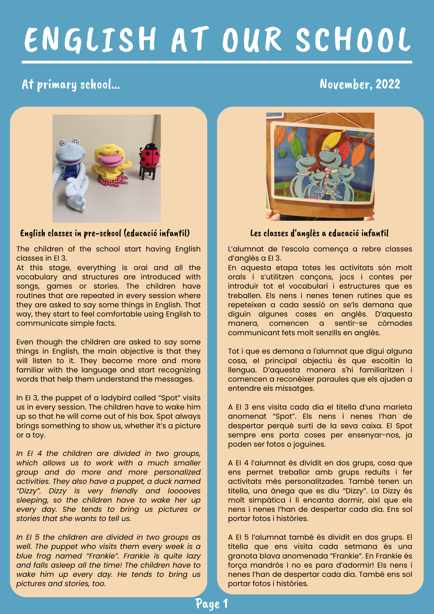 English at our school Feu un comentari / Per admin / 21/11/2022 / General / #English, #Infantil, #Primària, #Secundària, Anglès