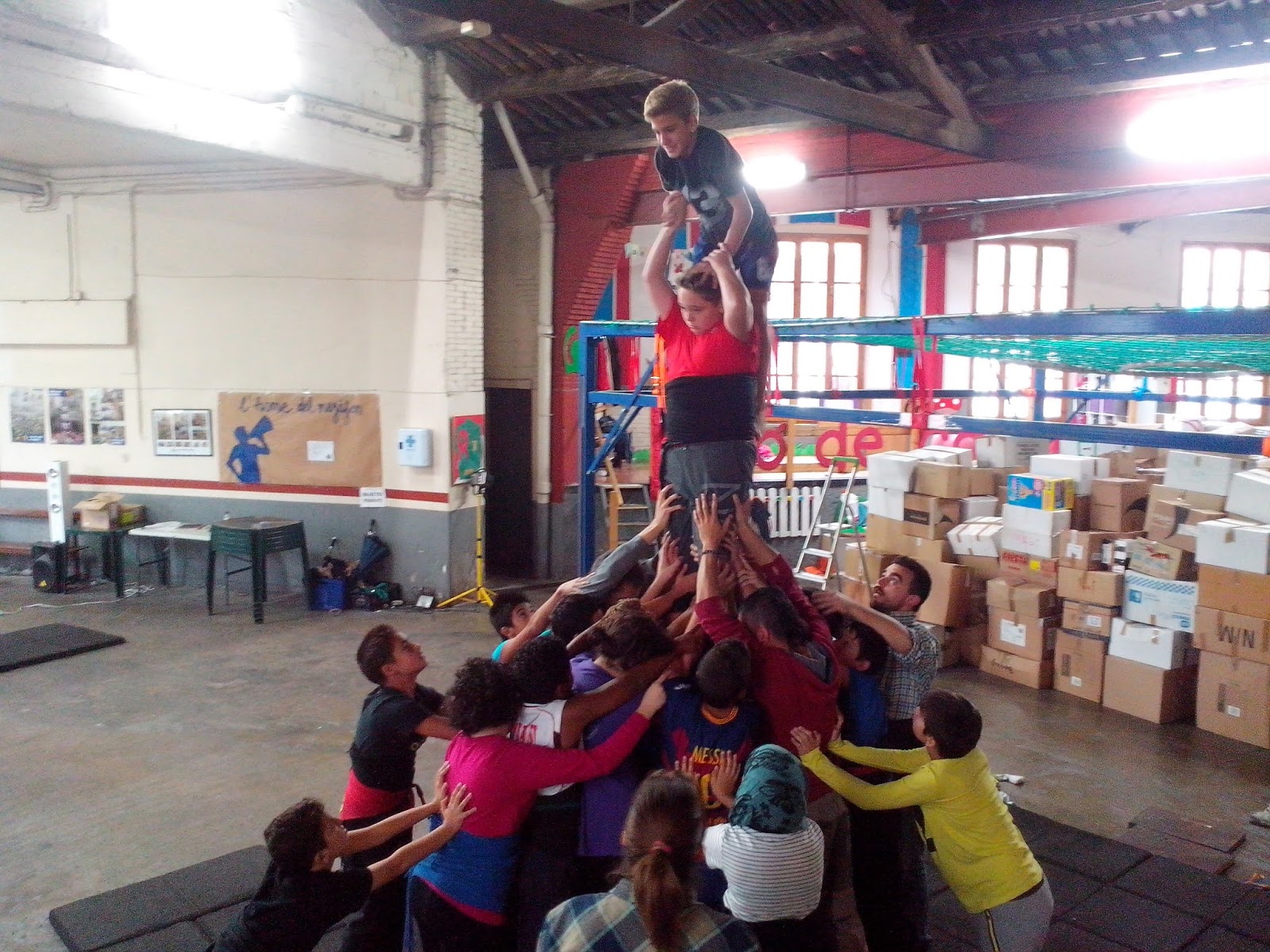 Dimecres a primera hora del matí, il·lusionats i emocionats, vam agafar el bus que ens va portar fins a Berga. Un cop a la seu dels Castellers de Berga vam aprendre tècniques de relaxació, vam fer grups i vam haver de practicar com es fa la pinya, els pilars , on van les agulles i moltes coses més. També ens vam adonar que, per tal que el Castell surti bé, s’ha d’estar concentrat, s’ha de treballar amb esforç i sobretot en equip. I el més important, que en un Castell hi cap tothom . Aquí teniu una bona mostra: