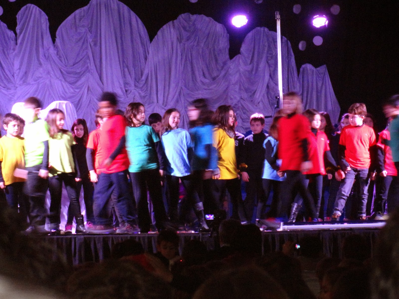 L’espectacle, que portava per títol “La nit de Nadal”, va començar cap a dos quarts de 10 del matí. En la primera part van actuar els alumnes de sisè, amfitrions de la festa, que ens van fer una bonica i moderna representació teatral i musical sobre el nadal, amb aspectes com el naixement, els dimonis, els Reis…