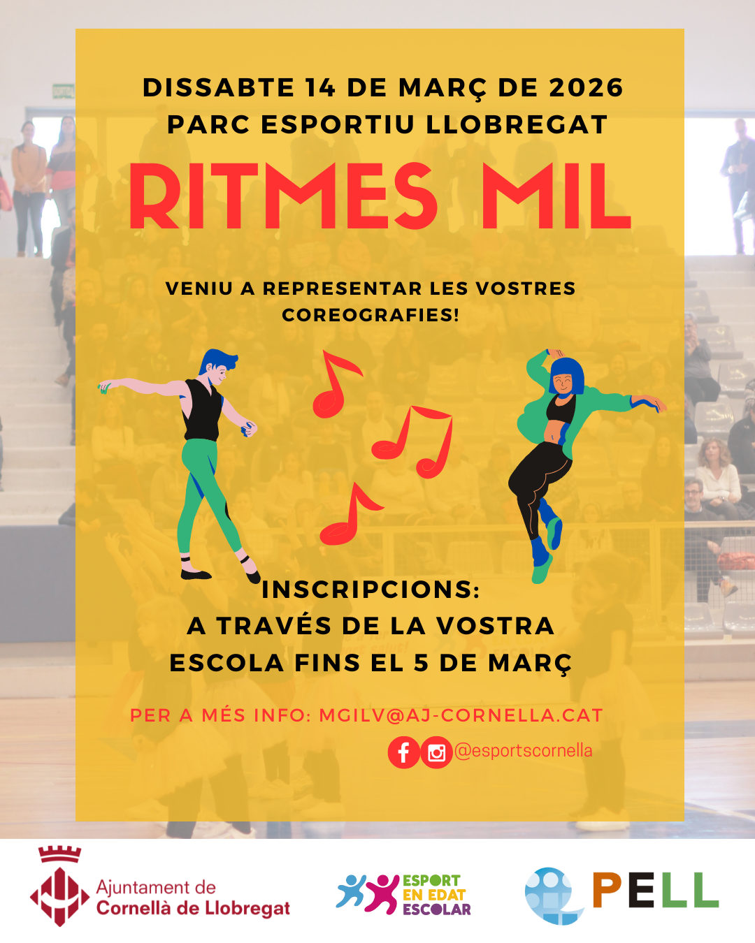 Us informem que el pròxim dissabte 14 de març de 2026 se celebrarà la IX Jornada de Ritmes Mil al Parc Esportiu Llobregat (Av. del Baix Llobregat, s/n, 08940 Cornellà de Llobregat, Barcelona), en… Llegeix més»