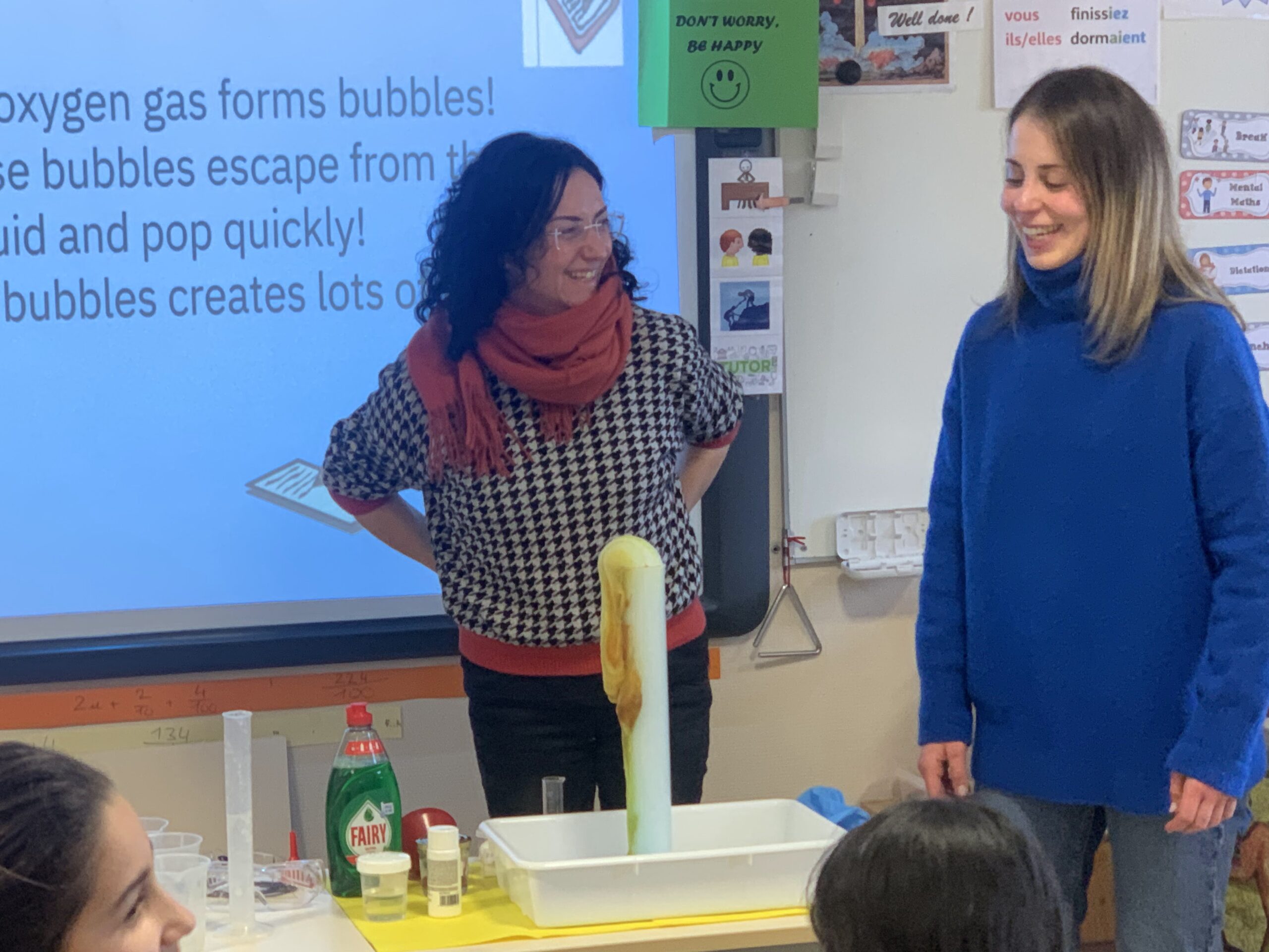 Una de les nostres grans satisfaccions ha estat dur a terme un experiment de ciències amb alumnes de 9 a 12 anys. Presentar el procés científic, explicar materials i compartir vocabulari ha estat una experiència motivadora tant per a nosaltres com per als alumnes, que van participar amb gran entusiasme. Les mestres del centre s’han mostrat molt agraïdes i interessades a implementar aquest tipus d’activitats a les seves classes.
