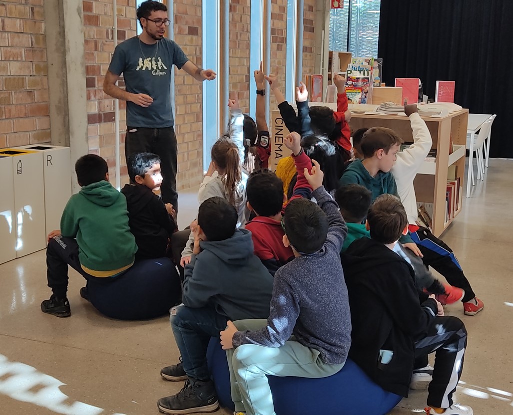 A l’escola, el taller de teatre o l’activitat de contes amb famílies. Fora del centre, hem visitat l’Ajuntament i hem parlat amb l’alcalde, l’Antonio Balmón. Hem parlat de la ciutat que desitgem i els dubtes que tenim respecte a qüestions de neteja, places per jugar o respecte a la nostra escola. També hem visitat la biblioteca Clara Campoamor, on hem pogut conèixer el seu funcionament i gaudir d’una jornada de lectura en un ambient ric i motivador.