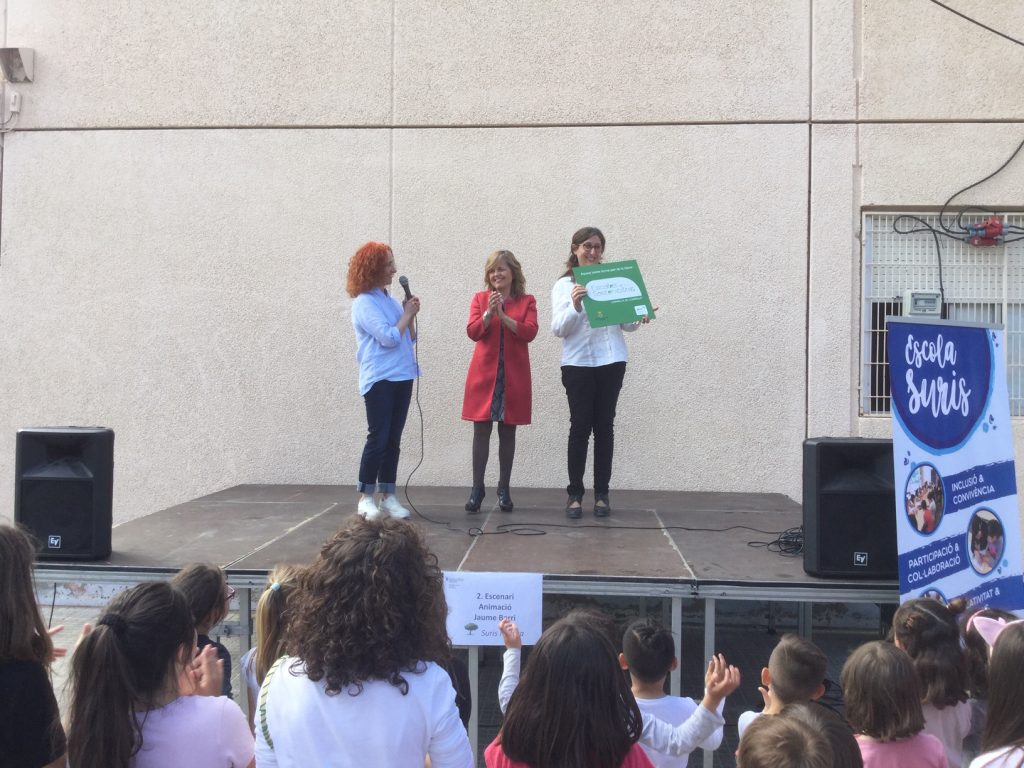El passat dia 10 de maig dintre de la Festa de la Natura des de l’Ajuntament ens van fer entrega de la placa XESCO que reconeix a l’Escola Suris dintre de la Xarxa d’escoles per a la Sostenibilitat de Cornellà. Aquest reconeixement s’otorga a les escoles de Cornellà que estan implicades d’ un projecte per aconseguir aprendre a cuidar i respectar la natura i gestionar millor els residus i els recursos de que disposem. Això només es pot aconseguir amb la participació de tothom que forma part de l’escola, famílies, alumnes, personal no docent i mestres. Aquí ho deixem una imatge de un dels equips d’ecodelegats de l’escola molt contents amb la nostra placa.Moltes gràcies per la vostra participació i implicació.