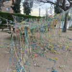 A continuació, tots els infants i mestres de l’escola hem llençat serpentines, com a records,  a una xarxa que simbolitza el nostre cervell. Algunes han quedat atrapades, d’altres han caigut…Una acció que ens permetrà poder començar a reflexionar sobre la memòria.