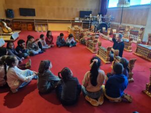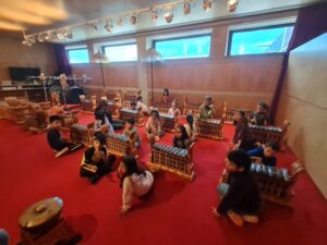 També han participat en un taller sobre el gamelan. Un gamelan és una orquestra tradicional d’Indonèsia, sobretot de les illes de Java i Bali, formada principalment per instruments de percussió com metal·lòfons, gongs i tambors, que toquen diverses persones alhora de manera molt coordinada. L’alumnat ha pogut aprendre com fer-lo sonar de forma conjunta i coordinada tot creant una melodia hipnotitzadora. Una experiència d’allò més sorprenent!