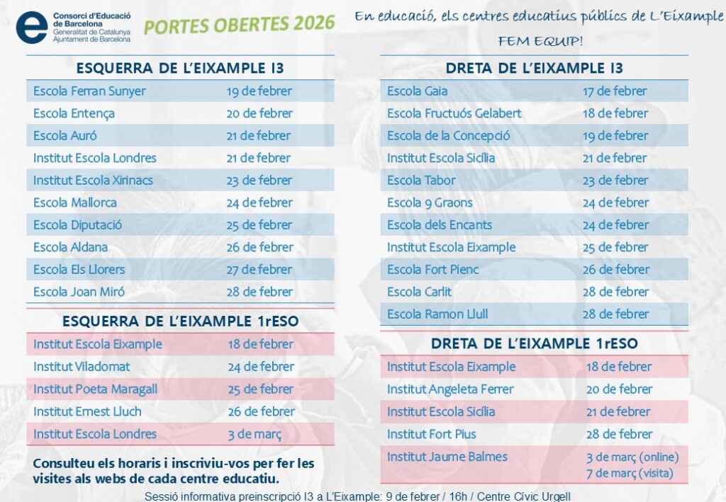 Portes obertes de les escoles públiques de l’Eixample