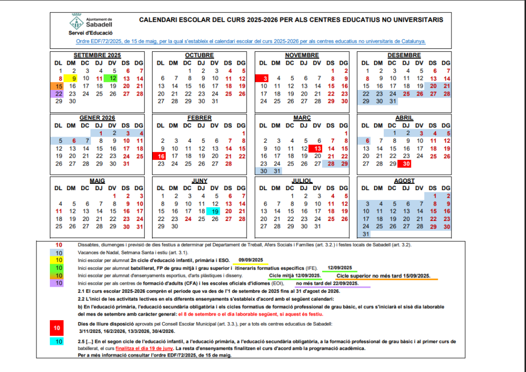 Calendari escolar 25-26