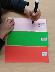Racó de llengua: Treballem totes les lletres del nostre nom, repetint-les en papers de colors separats i ordenant-les per enganxar-les.