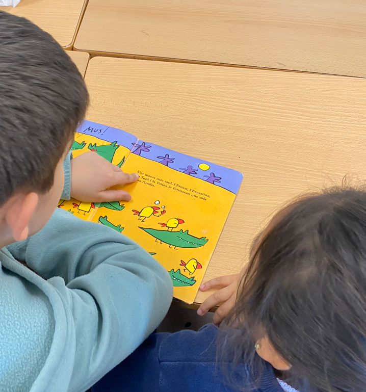 L’apadrinament lector és l’estona on l’alumnat de 5è i 6è comparteix la seva expertesa com a lectors amb l’alumnat d’I5