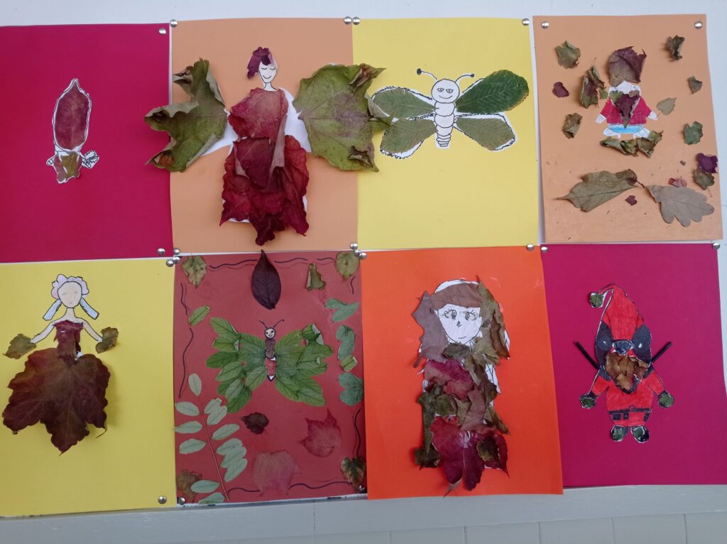 Les classes de 5è hem fet unes manualitats utilitzant unes fulles com a element de tardor. Hem combinat les fulles