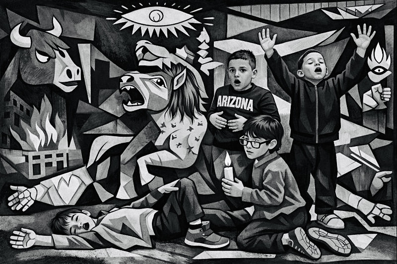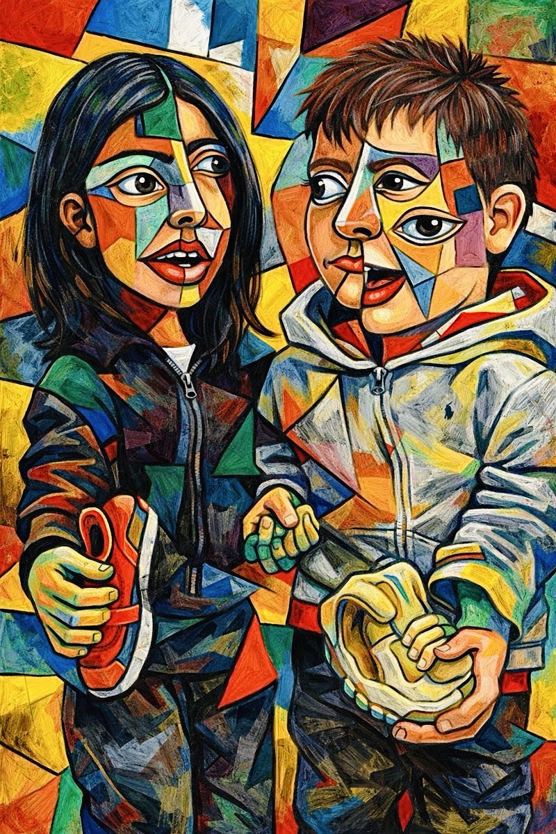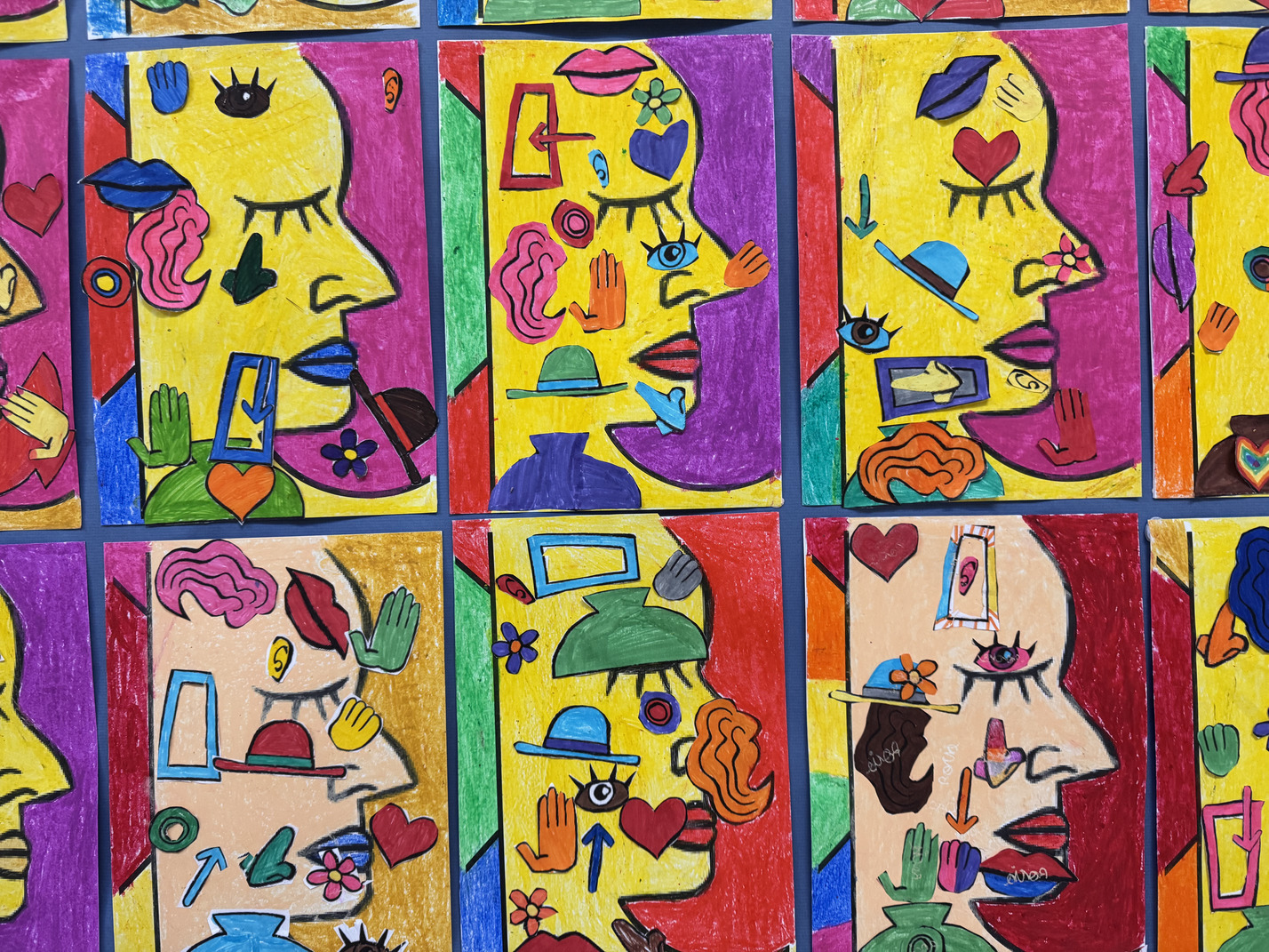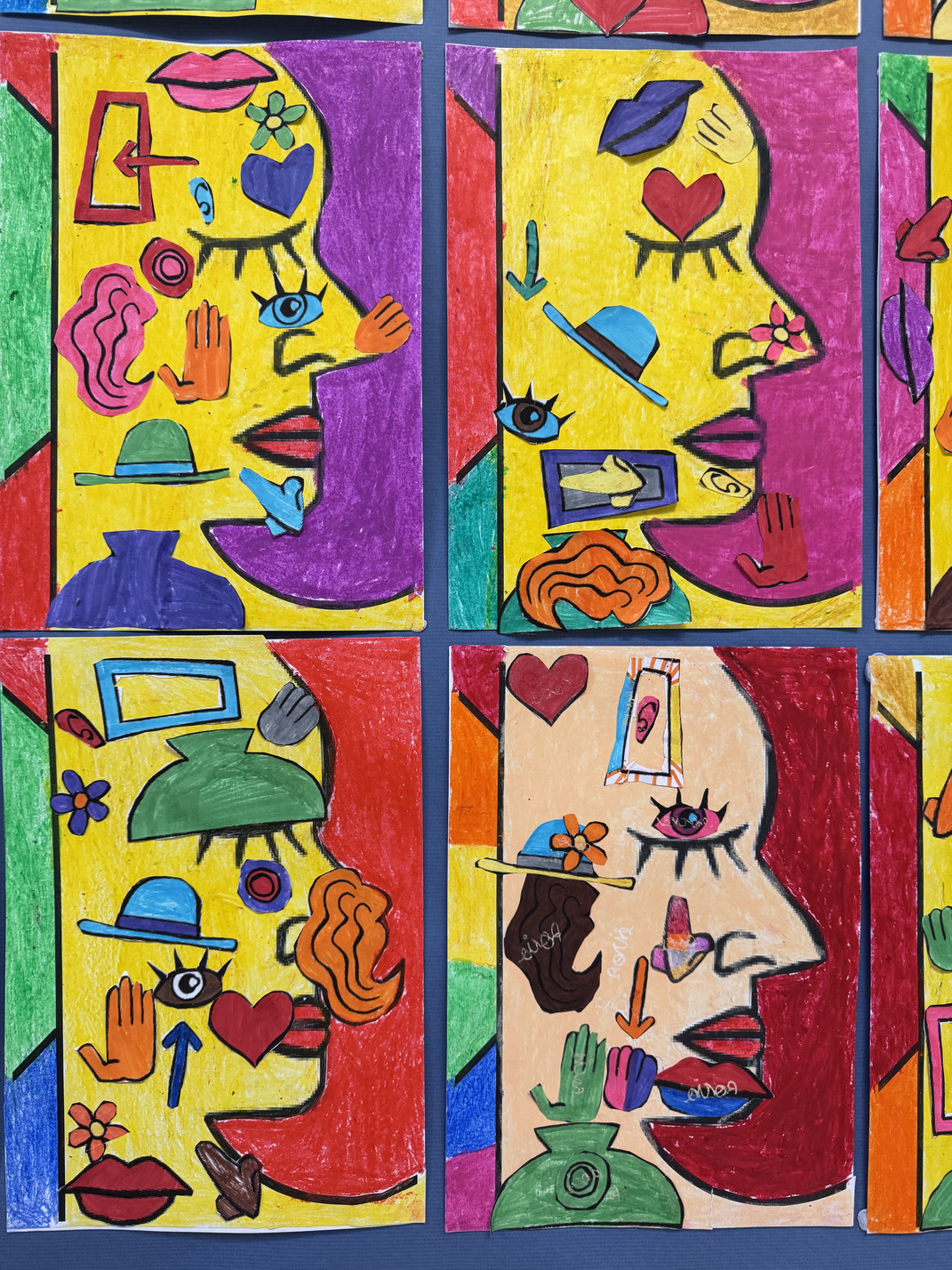 Entre les activitats que hem realitzat, hem conegut l’obra del Guernica, l’hem reinterpretat donant-li un aire més alegre, hem creat mòbils amb alguns dels seus elements, hem construït un retrat cubista i, finalment, hem elaborat obres pictòriques inspirades en Picasso amb l’ajuda de la intel·ligència artificial (IA), a partir de fotografies fetes als nens i nenes de la classe.