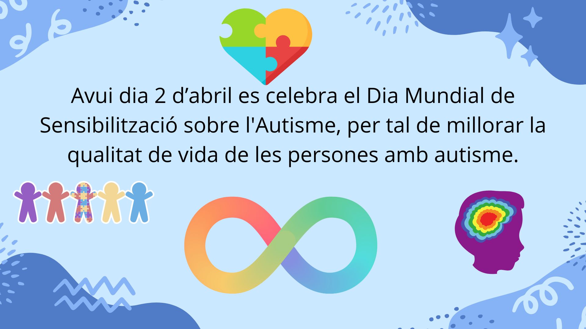 Avui dia 2 d’abril és el Dia Mundial de Sensibilització sobre l’Autisme. A les escoles hi ha més infants amb autisme i és bo donar visibilitat a aquest trastorn per poder afavorir una bona relació entre els iguals.