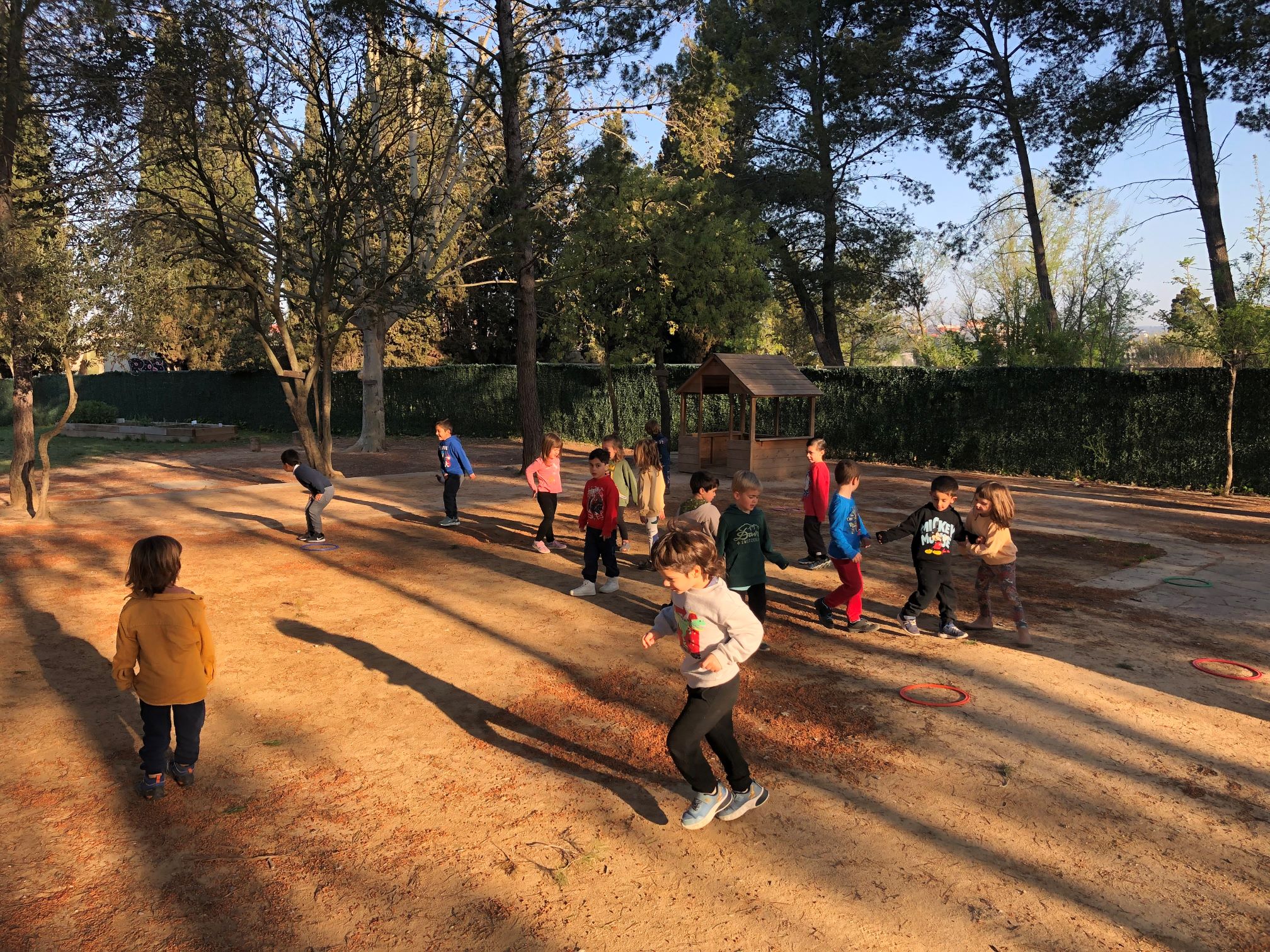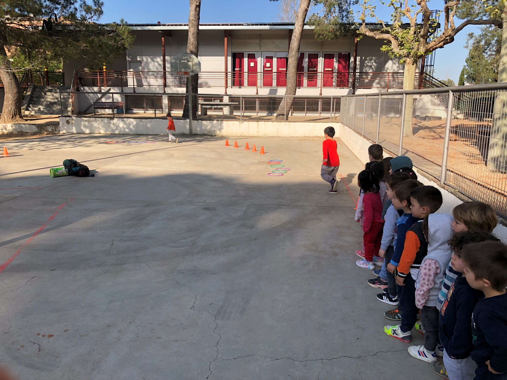 Amb el bon temps els alumnes de les classes de I4 i I3 hem aprofitat per fer Educació Física a l’exterior. Aquesta vegada ho hem fet al pati dels grans!