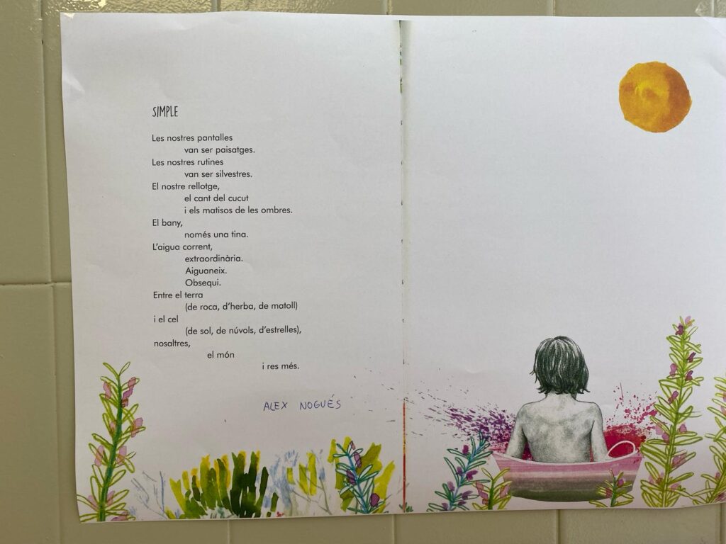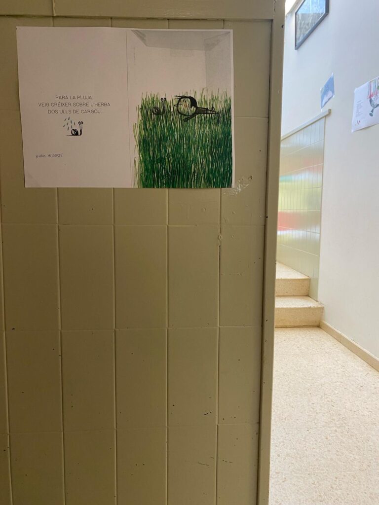 Amb aquest motiu, hem empaperat els parets de l’escola amb poemes que puguins ser llegits en qualsevol moment del dia.