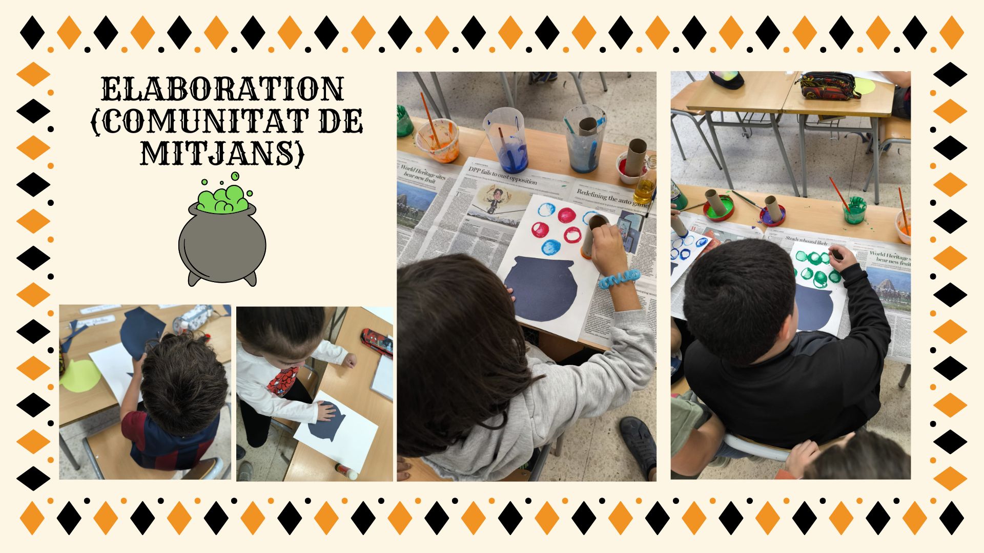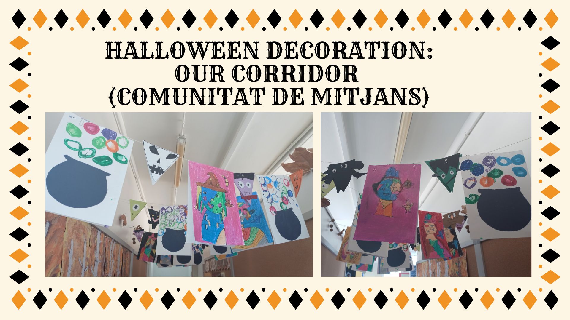 La comunitat de mitjans, s’ha encarregat de decorar el passadís amb cauldrons, pennant banners, i Picasso-inspired witches. Ha quedat molt bé!