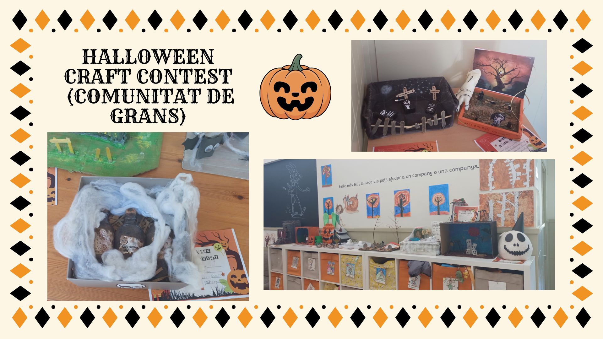La comunitat de grans ha celebrat la segona edició del Halloween Craft Contest, un concurs en què presenten manualitats de Halloween. Congrats, participants! The school looked beautifully spooky!