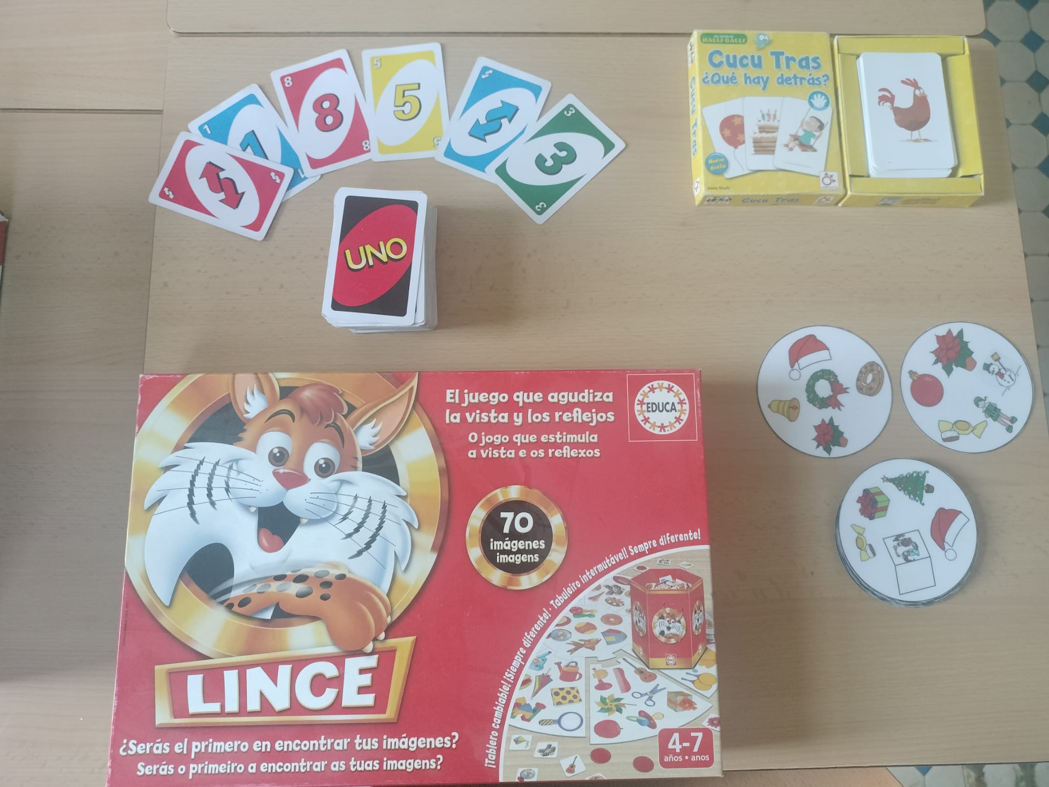 A l’escola, disposem d’una gran varietat de jocs educatius i de taula. En algunes ocasions, els trèiem i passem una estona divertida jugant i aprenent. Us deixem un recull d’aquests jocs, alguns més adients per treballar l’atenció, d’altres més adients per treballar la lectoescriptura o la numeració i alguns són jocs de taula tradicionals que sempre hem utilitzat per passar una bona estona en famÃlia o amics.