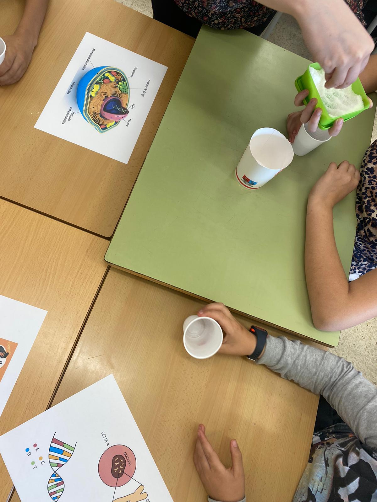 Els nens i nenes de cinquè estem treballant la cèl·lula i la Noelia, mare de la classe, ens ha vingut a fer un taller sobre l’extracció del nostre propi ADN. Ha sigut molt interessant, ja que ens ha explicat dades curioses que ens han meravellat.