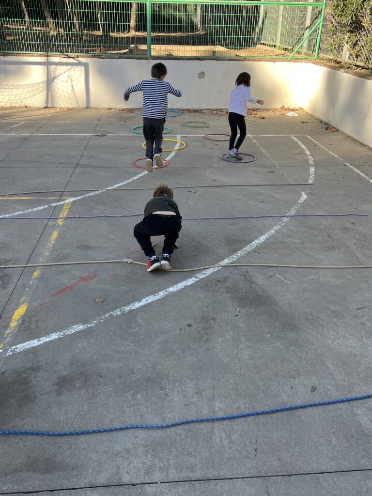 A 1r i 2n d’Educació Física estem treballant l’esquema corporal mitjançant estacions motrius vinculades a diferents articulacions del cos. A cada estació hi ha una targeta que indica quina articulació han d’activar, i a partir d’això realitzen un joc o una proposta motriu específica.