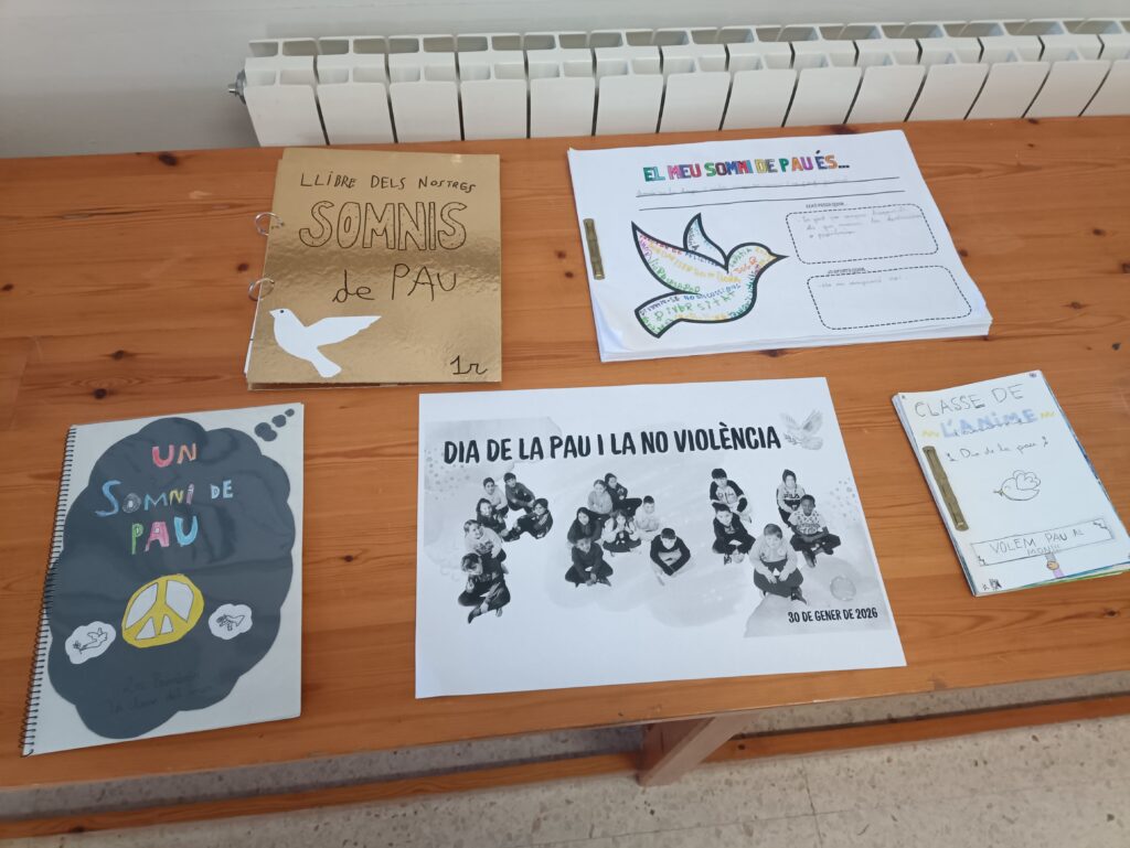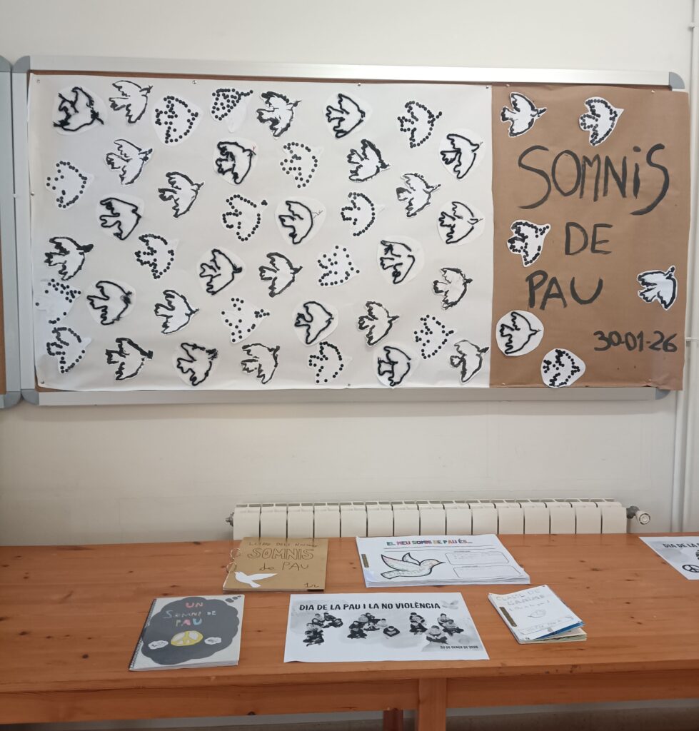 Els alumnes de primària han portat un recull d’intencions i desitjos envers la pau. Tots hem passat a visitar l’exposició i a conversar sobre la importància de la pau.