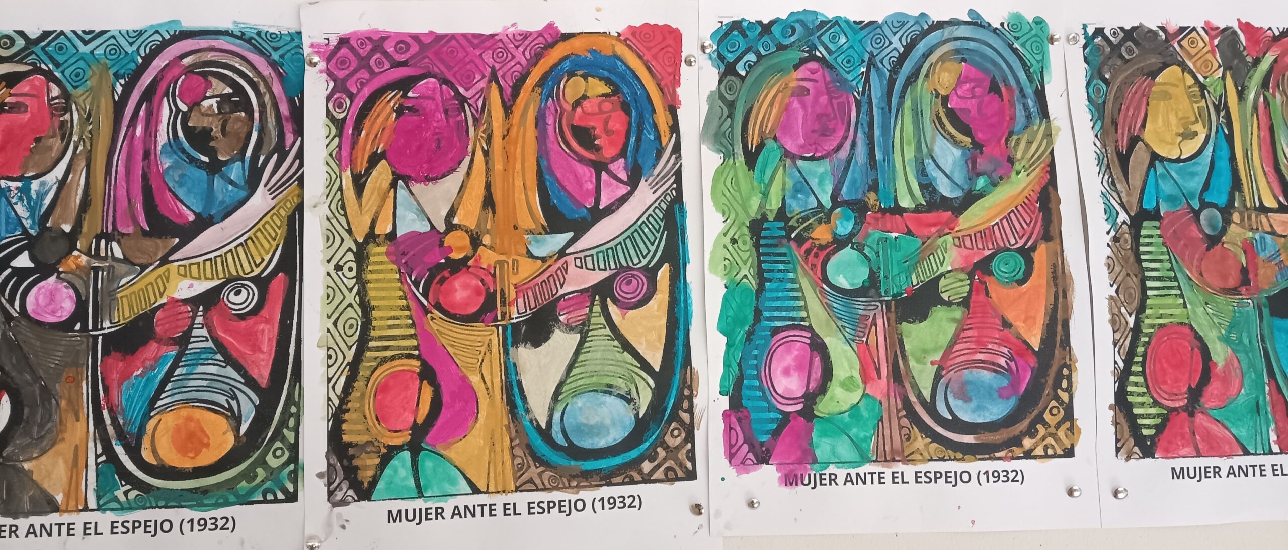 A partir d’aquesta obra, hem agafat els pinzells i n’hem fet una reproducció utilitzant el color de manera personal, cadascú al seu estil.