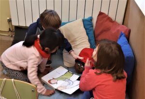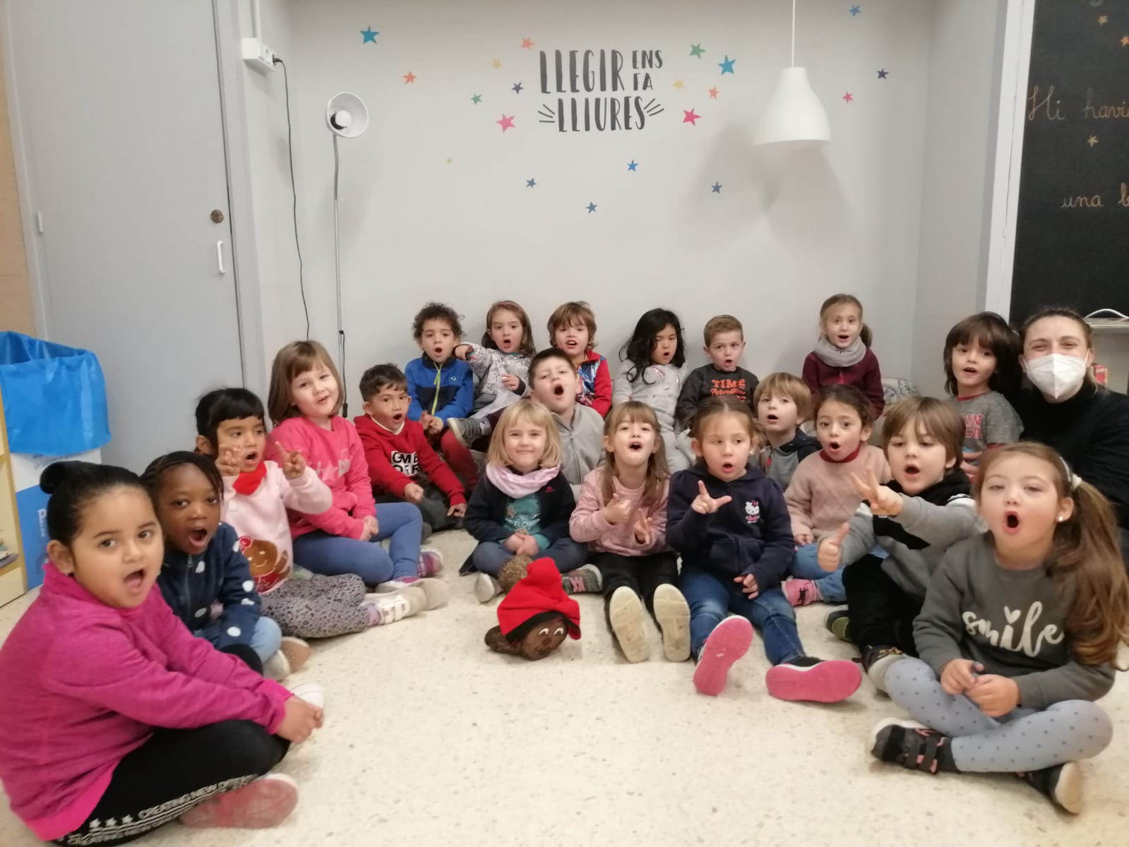 DIVENDRES PASSAT, ESTEM TAN TRANQUILS I TRANQUIL·LES PREPARANT-NOS PER ESMORZAR QUAN, DE SOBTE, ESCOLTEM UNS CRITS ALEGRES I UNES PASSES QUE CORREN: L’ABRIL, L’IRIS, LA FATOU I EL JOAN, QUE HAN ANAT AL LAVABO A RENTAR-SE LES MANS, ENTREN A CLASSE TOT CRIDANT “HA ARRIBAT EL TIÓ!!!”, MENTRE L’ABRIL MOSTRA UNA BARRETINA QUE HAN TROBAT AL LAVABO. LA RESTA SORTIM CORRENTS EMOCIONATS I EMOCIONADES PER BUSCAR-LO. MIREM PERTOT ARREU, PERÒ NO EL VEIEM. ON S’HAURÀ FICAT? 🤔 DE COP I VOLTA, EL NIL ENS AVISA QUE HA TROBAT PELES DE MANDARINA PEL TERRA I DECIDIM SEGUIR-NE EL RASTRE… ENS PORTA A LA BIBLIOTECA DE L’ESCOLA. DESPRÉS DE BUSCAR I REBUSCAR EL TROBEM EN UN RACONET, TOT MIRANT-SE UN LLIBRE. AMB MOLT DE COMPTE, EL PORTEM A LA CLASSE I PENSEM UN LLOC ON PUGUI ESTAR CÒMODE. AL FINAL, LI PREPAREM UN RACONET A LA BIBLIOTECA, ENVOLTAT DE COIXINS. ARA NOMÉS QUEDA DONAR-LI DE MENJAR I D’AQUÍ A UNS DIES… “CAGA, TIÓ, AVELLANES I TURRONS…”.