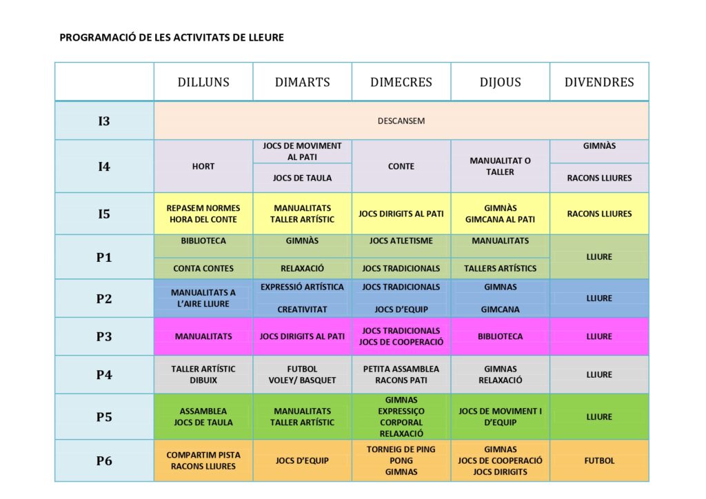A continuació podeu visualitzar els plannings d’activitats mensuals i imatges de les activitats mensuals: