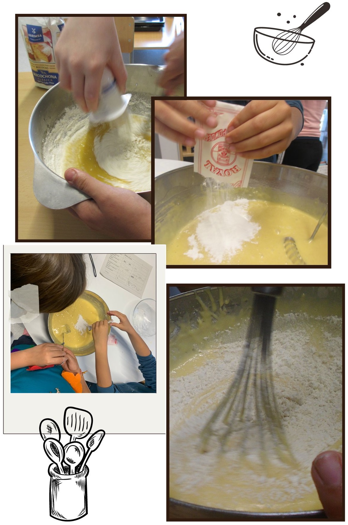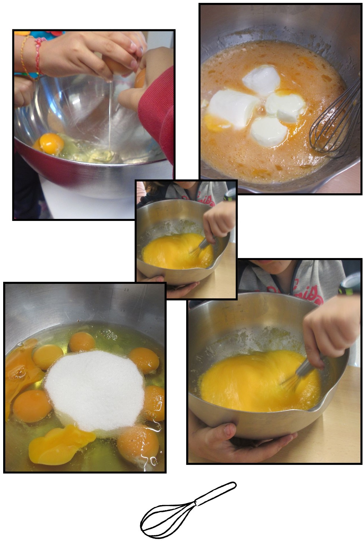 Trencar ous, batre amb el sucre, afegir… remenar, barrejar, abocar… coure, forn, graus, temps…