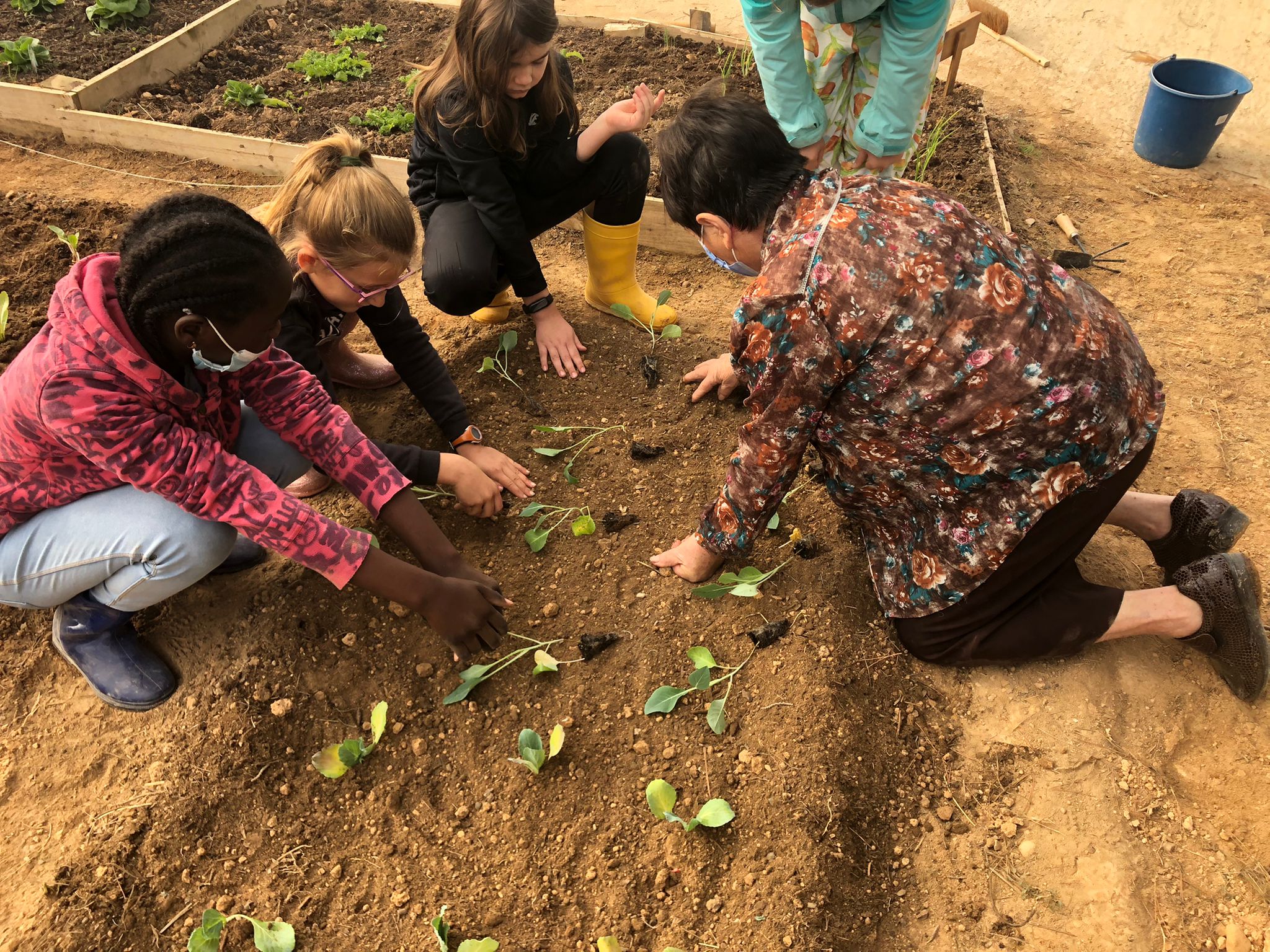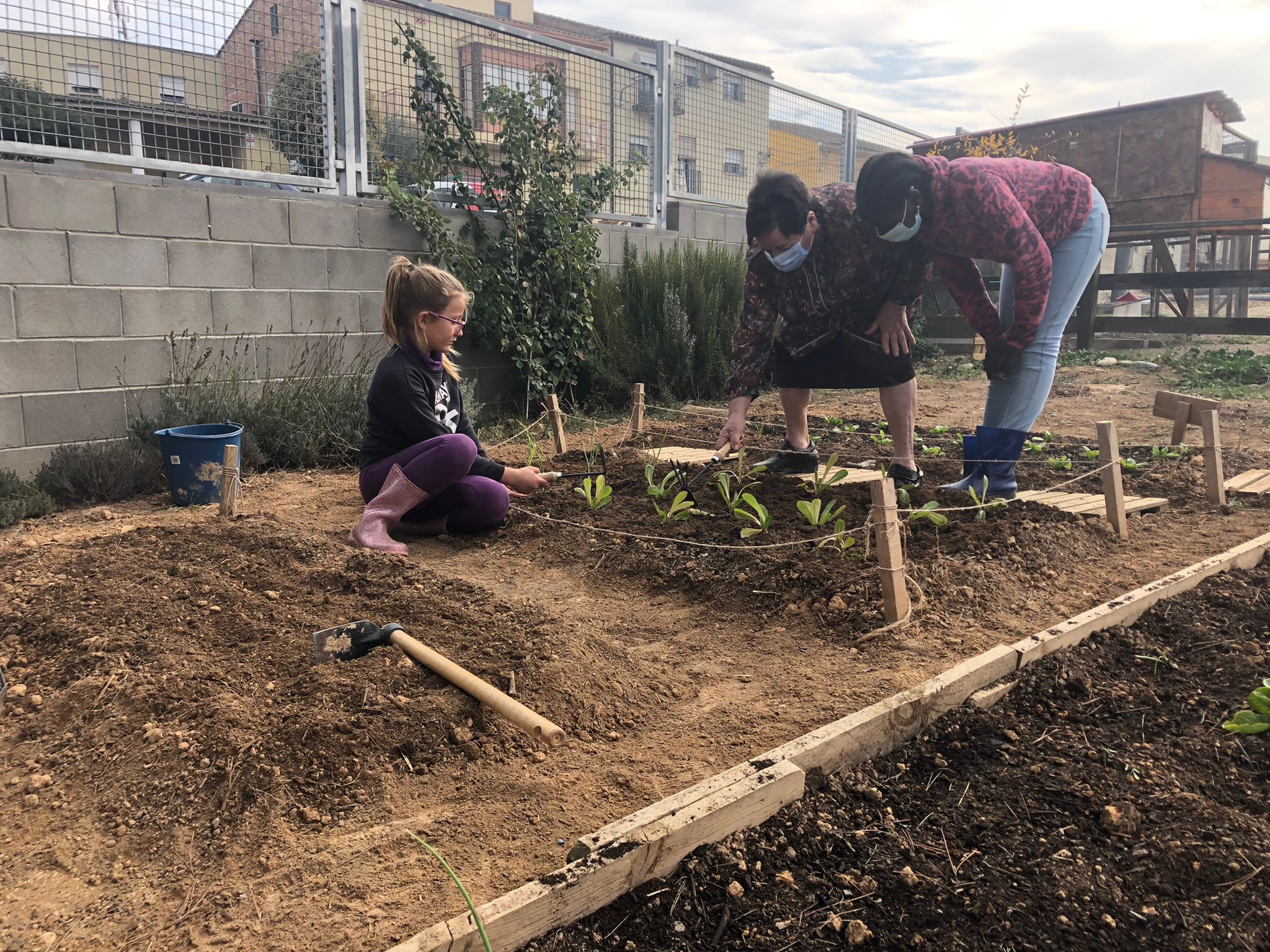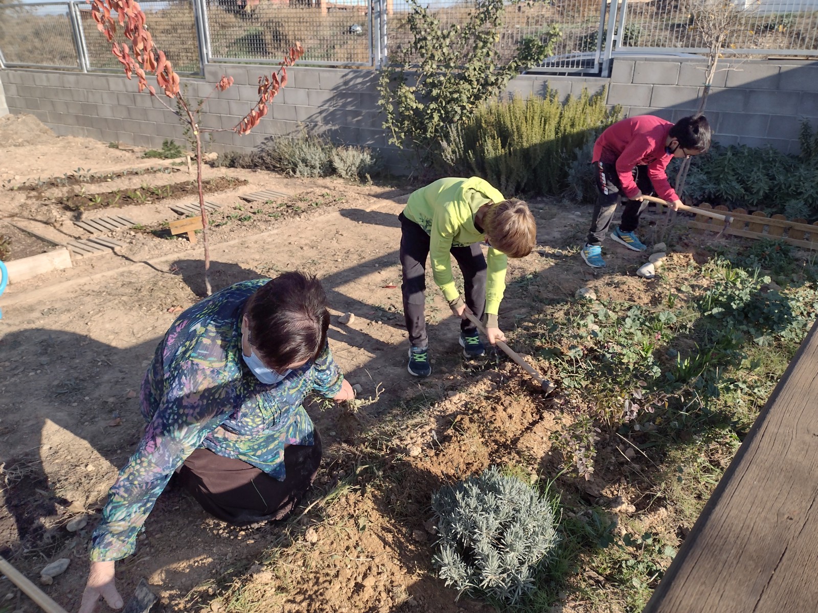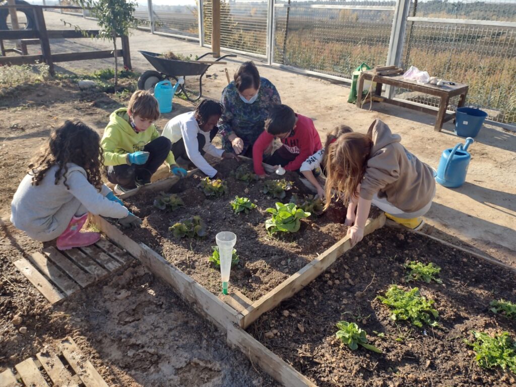 La Pilar, padrina de la Lucia i el Xavi, ha vingut tres cops, ens ha ensenyat a plantar millor i ens ha aconsellat sobre la quantitat d’aigua per regar i què podíem plantar.