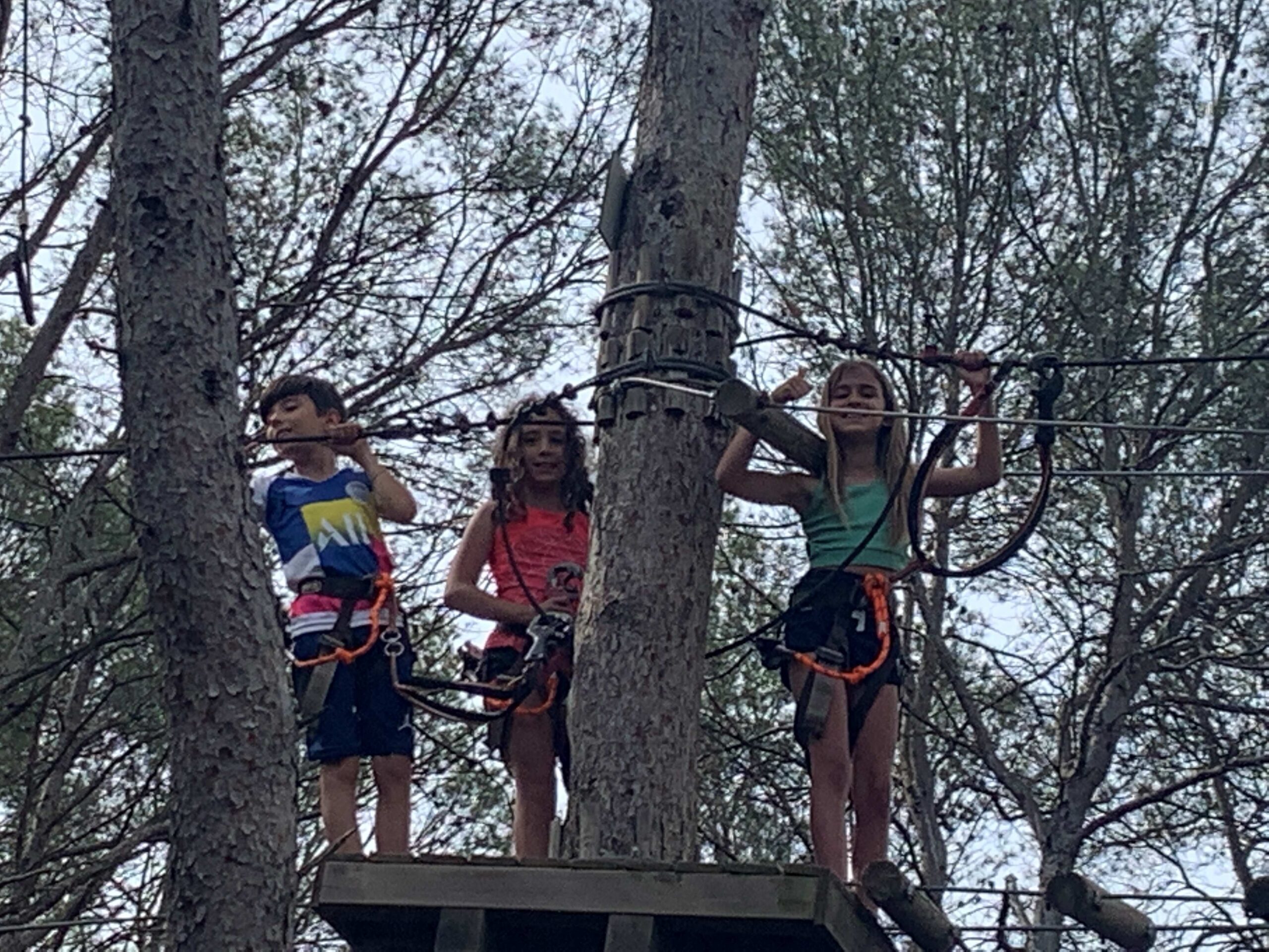 I a més a més, ens vam posar a prova amb l’activitat del circuit d’aventura. Vam passar per: lianes, ponts, tirolines, xarxes… Fer un circuit pels arbres és una activitat motivadora i potencia elements importants per al seu desenvolupament personal com ara: la destresa, l’autoconfiança, el coratge i la superació personal. Ahir tots van superar pors, nervis i ens vam omplir de satisfacció quan van acabar el repte.