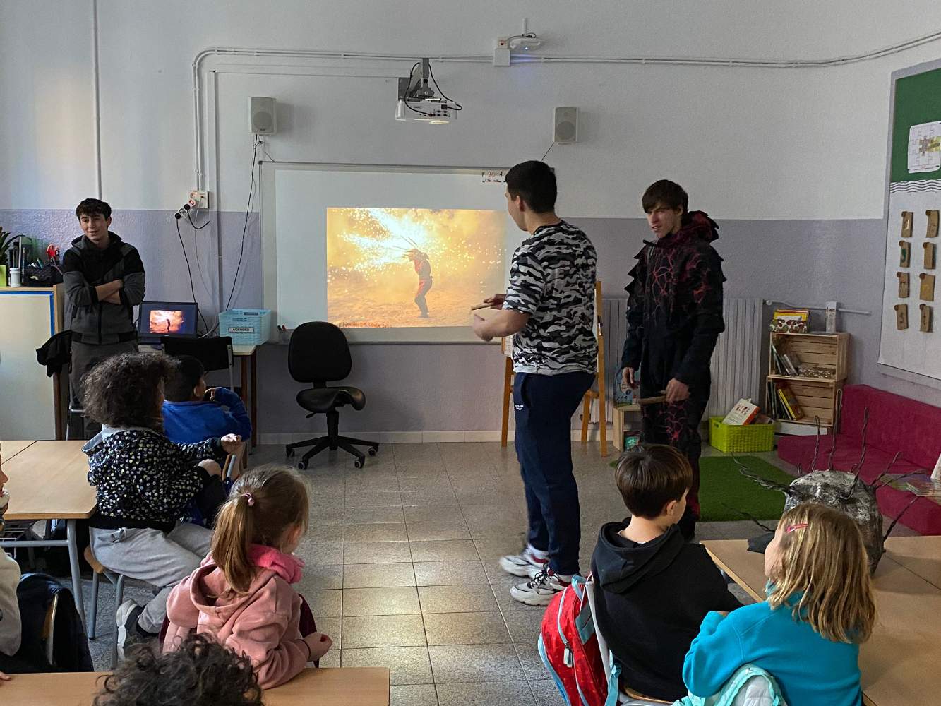 Aquest segon trimestre hem tingut una visita molt especial que ens ha ajudat a descobrir què són els diables. Teníem clar qui som els diables de primer i després de mirar la web i escoltar en directe als joves dels Diables de l’Onyar, podem dir que ja som més experts! Us sonen paraules com correfoc, ceptrot, carretilla, pólvora, Llucifer…?